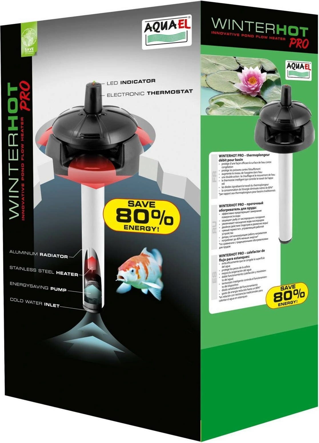 WINTERHOT PRO prikladan je praktički za svako jezerce. Čak i tijekom iznimno hladne zime osigurava slobodnu izmjenu plinova u spremniku, štiteći tako stanovnike od gušenja i održavajući ih zdravima i fit do proljeća. Sve to uz brigu za okoliš i novčanik vlasnika.