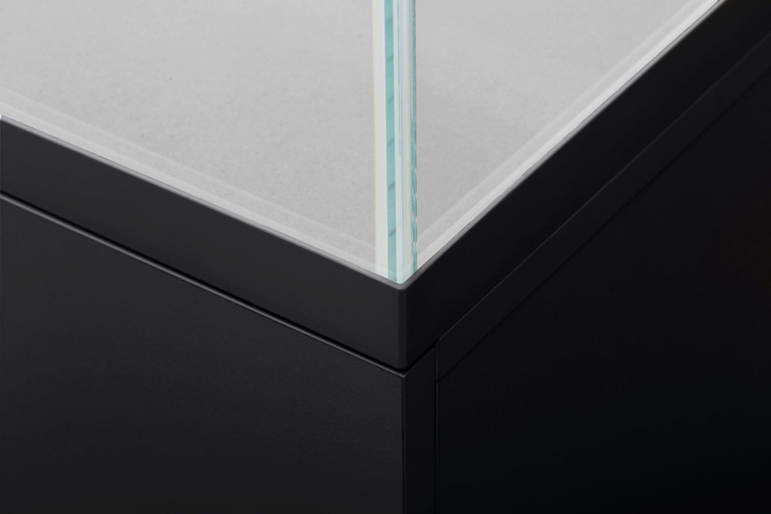 Akvarij izrađen od bijelog stakla omogućava da dizajnirani layouti u njemu izgledaju potpuno neutralno po pitanju boja i prirodno. Polirani rubovi i prozirno lijepljenje osiguravaju diskretan izgled.