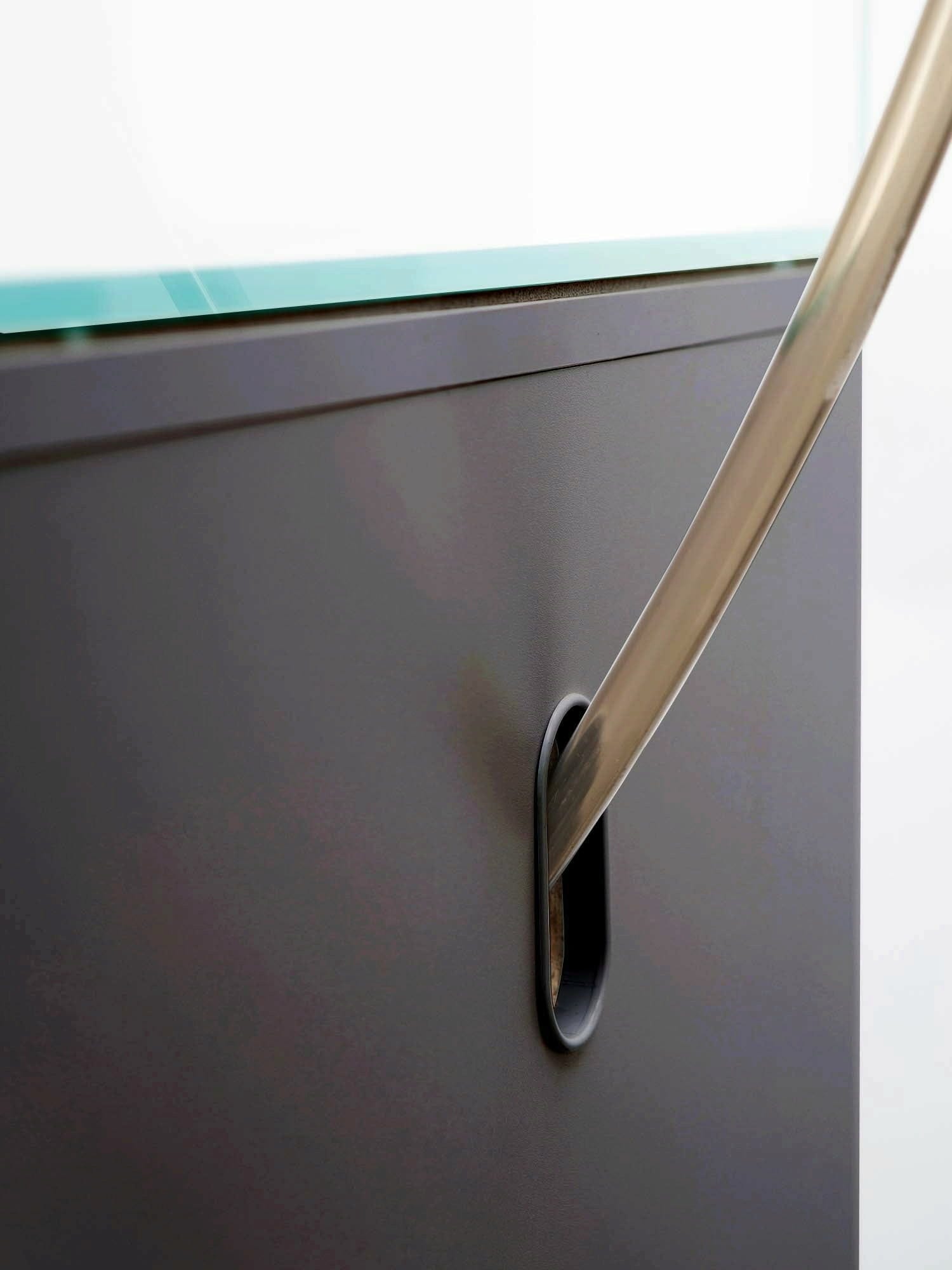 Akvarijski ormarić UltraScape 60 forest uvjerava svojim modernim dizajnom. Vrata bez ručki otvaraju se pomoću funkcije Push to open. Noge podesive po visini jamče sigurno stajanje i izjednačavaju manje neravnine. Glavna značajka ovog ormarića je bočni otvor, kroz koji se provode cijevi do akvarija - to ne samo da skraćuje put nego i izgleda dobro.