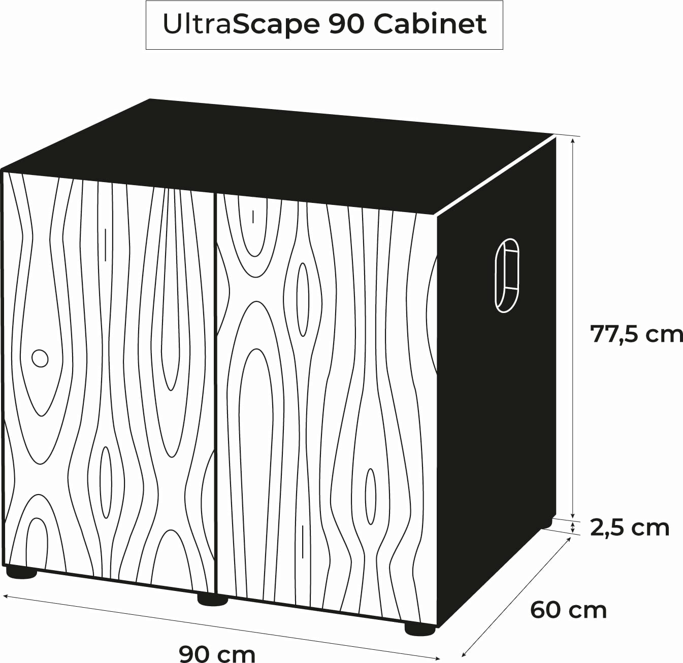 Akvarijski ormarić UltraScape 90 forest osvaja modernim dizajnom. Vrata bez ručki otvaraju se putem funkcije Push to open. Noge podesive po visini jamče stabilnost i kompenziraju manje neravnine. Glavna značajka ovog ormarića je bočni otvor, kroz koji se provode cijevi do akvarija - to ne samo da štedi prostor, nego i izgleda dobro.