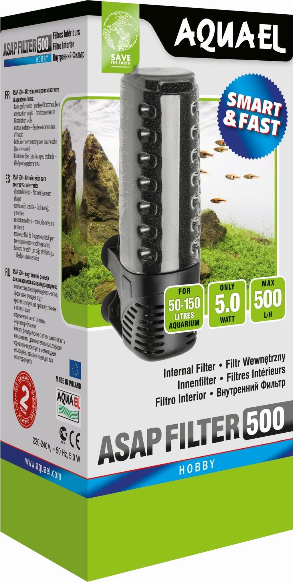 Unutarnji filter ASAP sastoji se od modernog, energetski učinkovitog motora smještenog u elegantno kućište i velike prozirne filtarske posude napunjene pažljivo odabranom filterskom spužvom. Spužvu brzo nastane korisne bakterije, pa je voda koja prolazi kroz filter podvrgnuta i biološkoj i mehaničkoj filtraciji. Tako ostaje bistra i sigurna za stanovnike akvarija. Filter zahtijeva dvije osnovne vrste postupaka održavanja. Jedna se sastoji u uklanjanju filtarske posude i zamjeni novom (nudimo standardne uloške kao i uloške s aktivnim ugljenom ili apsorberima fosfata kako bi se spriječio rast algi). Druga uključuje ispiranje filtarske spužve u vodi ispuštenoj iz akvarija. Ovaj se postupak može izvesti bez uklanjanja cijelog filtera iz akvarijske posude, što je vrlo praktično i značajno smanjuje vrijeme održavanja.