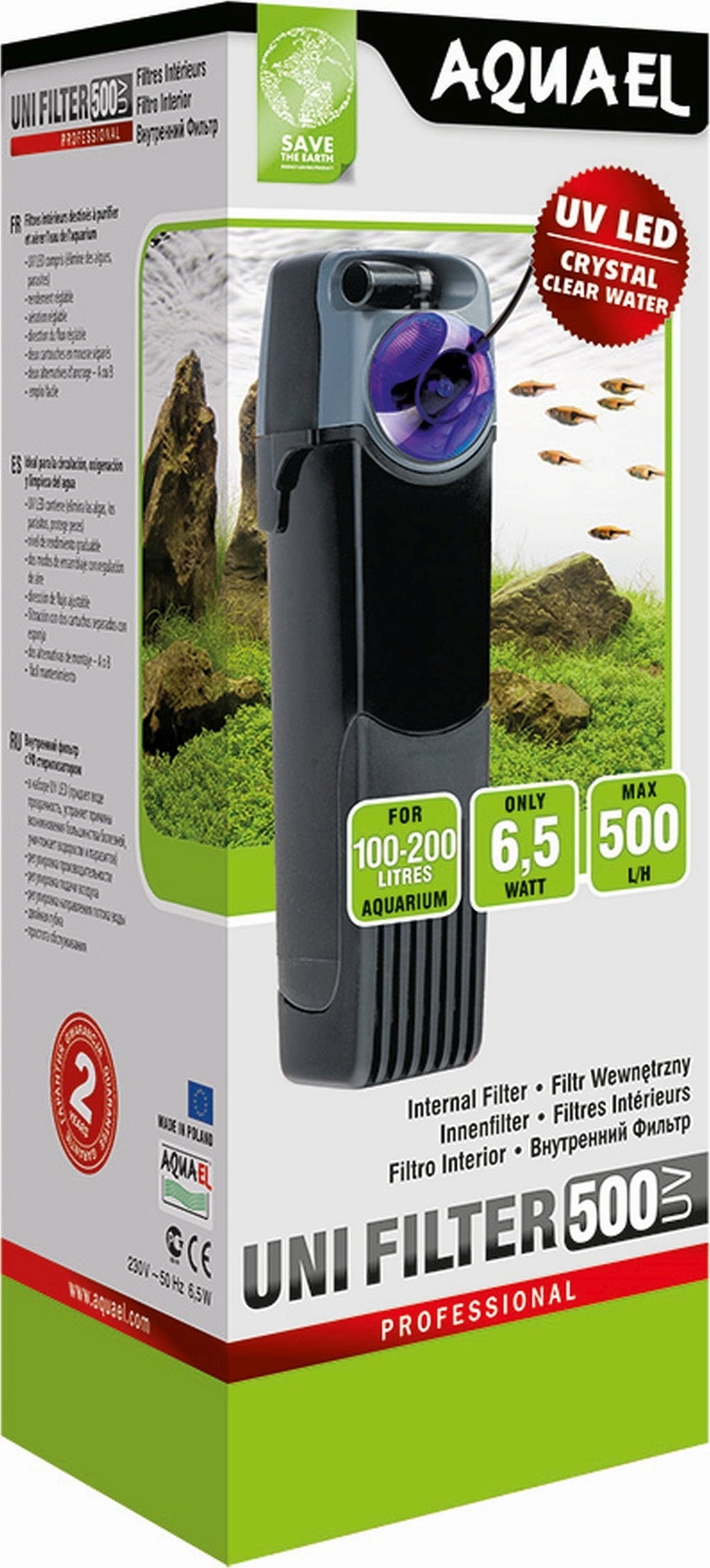 AQUAEL UNIFILTER UV služi za pročišćavanje i prozračivanje vode u akvariju. Osim učinkovite filtracije vode, uređaj sterilizira vodu ultraljubičastim LED diodama. Time se sprječava rast plivajućih algi, protozoa i bakterija, što povećava bistrinu vode i zdravlje riba. UV LED diode mogu se uključiti i isključiti neovisno o filteru.