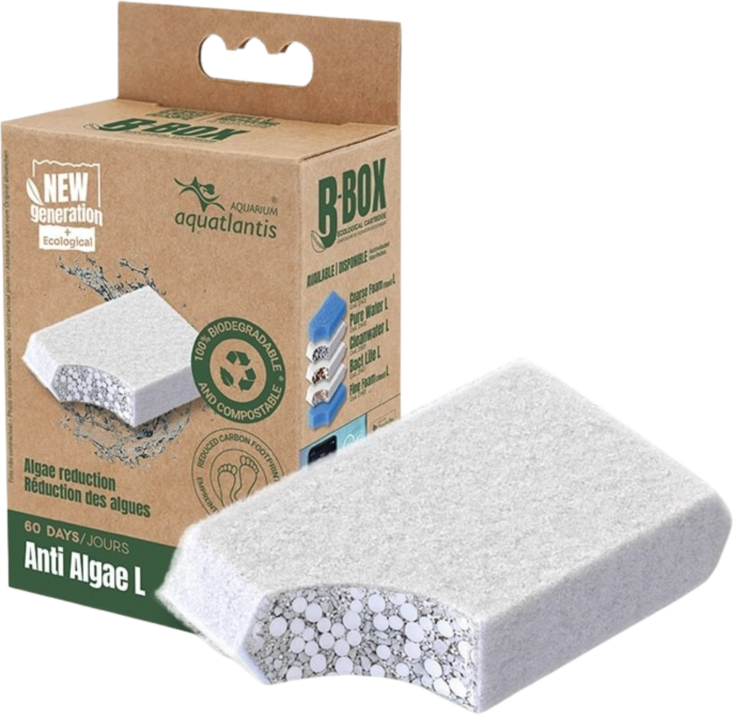 B-Box Anti Algae za filtre marke Aquatlantis nudi vrlo učinkovitu filtraciju i služi za suzbijanje i smanjenje neželjenih algi. Osim toga, apsorbira fosfate, nitrate i amonijak. Filtarski medij vrlo se jednostavno mijenja i mora se zamijeniti svaka 2 mjeseca.