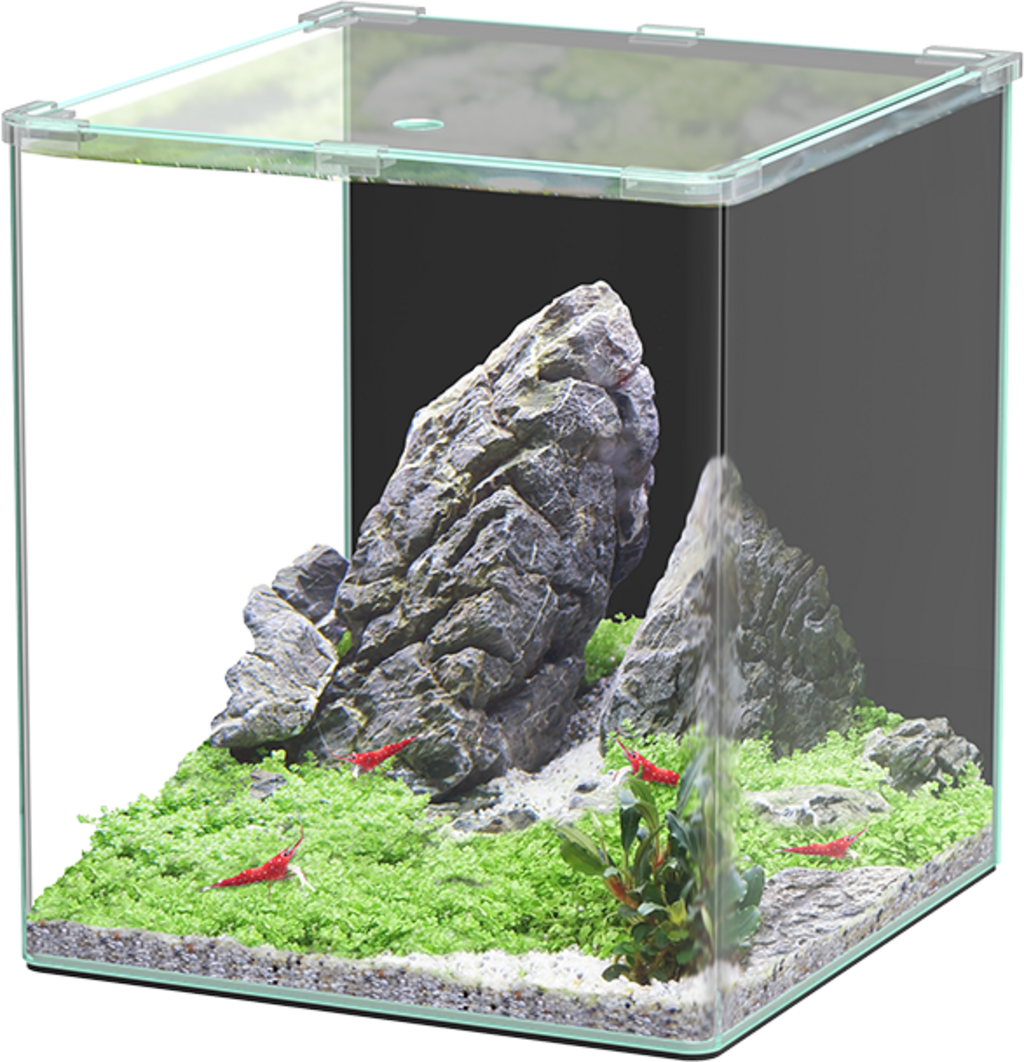 Osim akvarija, Basic set sadrži i podlogu za ublažavanje udaraca koja stvara idealnu podlogu za akvarij i štiti njegovo dno. Osim toga, set uključuje i crnu samoljepljivu naljepnicu za stražnju stranu akvarija, koja osigurava odgovarajući ambijent.