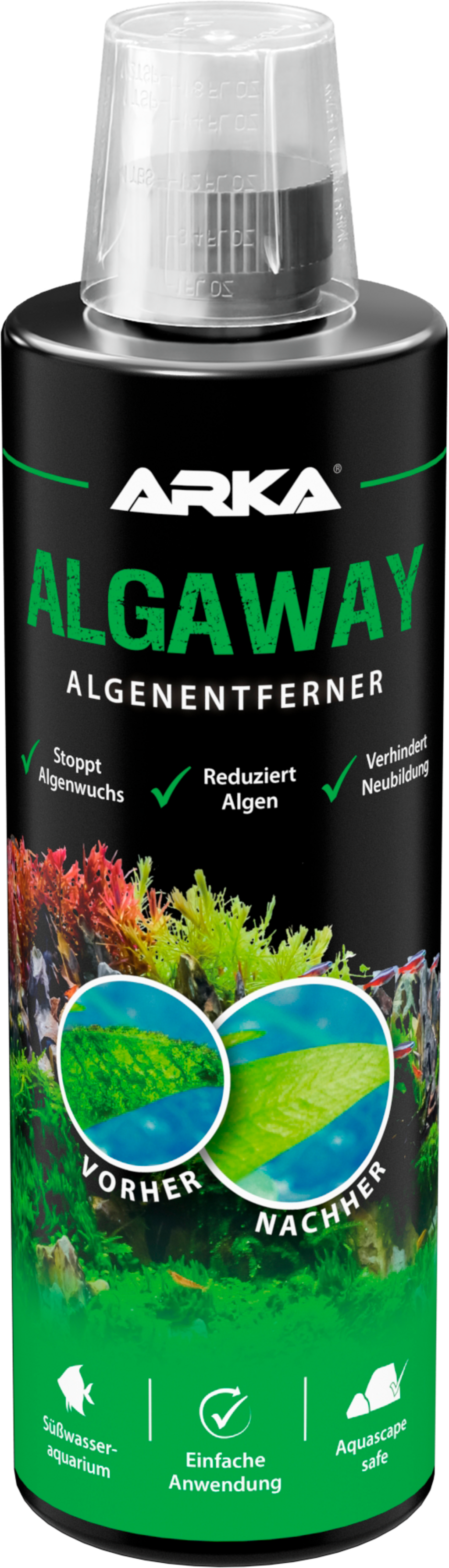 Algaway tvrtke Microbe-Lift je posebno razvijeno sredstvo za uklanjanje algi za korištenje u svim slatkovodnim akvariju. Zaustavlja rast postojećih algi uklanjanjem hranjivih tvari, gura ih natrag i tako održivo sprječava njihovo ponovno stvaranje.