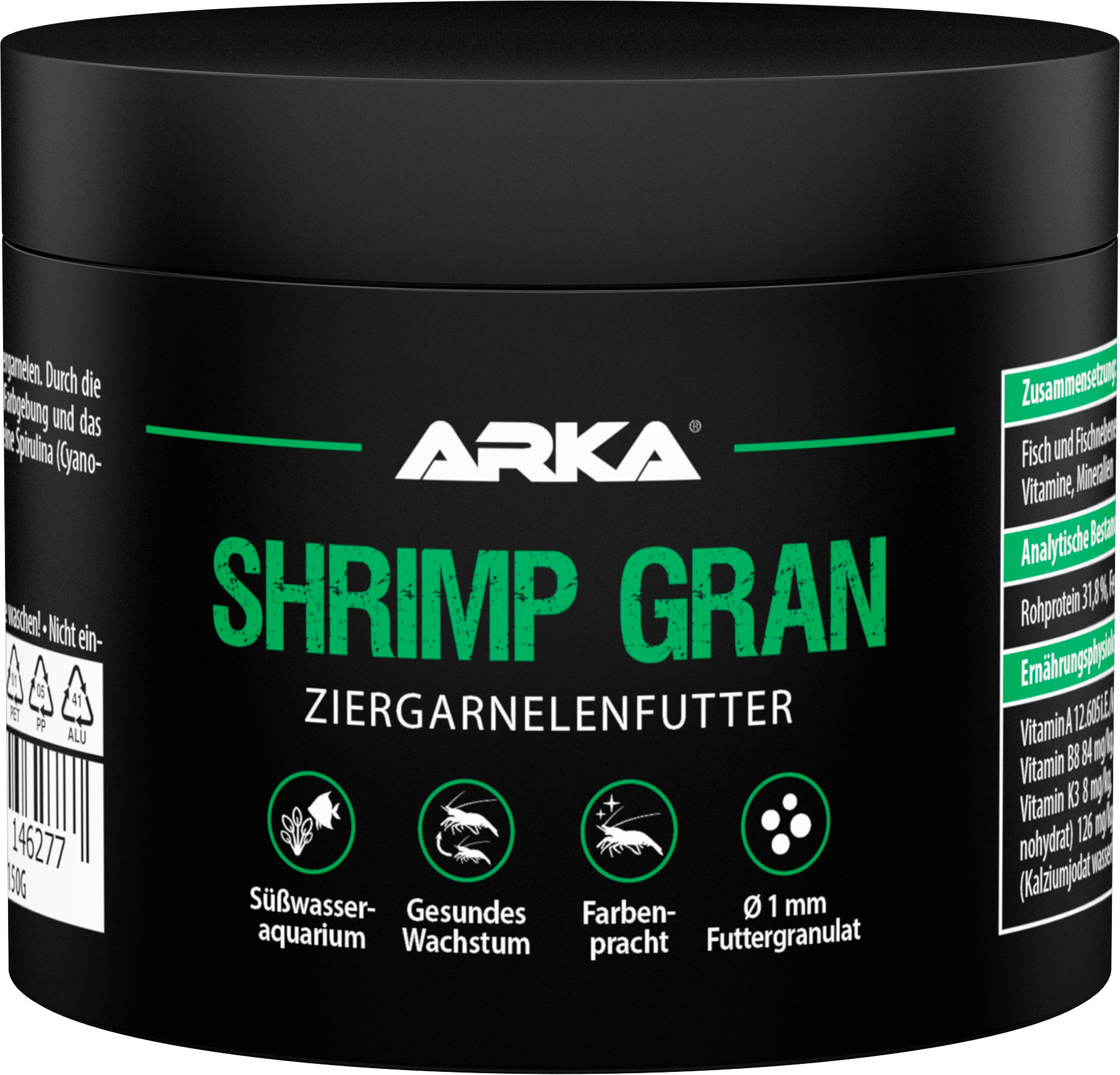 Ova osnovna hrana za ukrasne kozice proizvodi se složenim postupkom hladnog prešanja koji čuva vitamine. Kao mekane granule za hranu, osigurava optimalnu prehranu, maksimalan rast i bogate boje. Sastoji se od najkvalitetnijih i posebno usklađenih sastojaka te štiti kvalitetu vode - bez spiruline (cijanobakterija) i bez ribljeg brašna niže kvalitete.