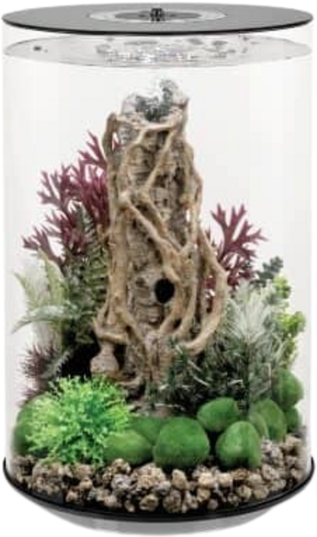 Ovaj jedinstveni nano akvarij oduševljava svojim modernim dizajnom bez rubova i lajsni, koji vam omogućuje kružni pogled od 360° na vaš podvodni svijet. S promjerom od 32,8 cm i visinom od 51,3 cm, bazen nudi dovoljno prostora za prekrasan dizajn. Izrađen od otpornog, prozirnog i laganog akrila, nije samo iznimno stabilan, već i mnogo prozirniji od tradicionalnih staklenih akvarija.