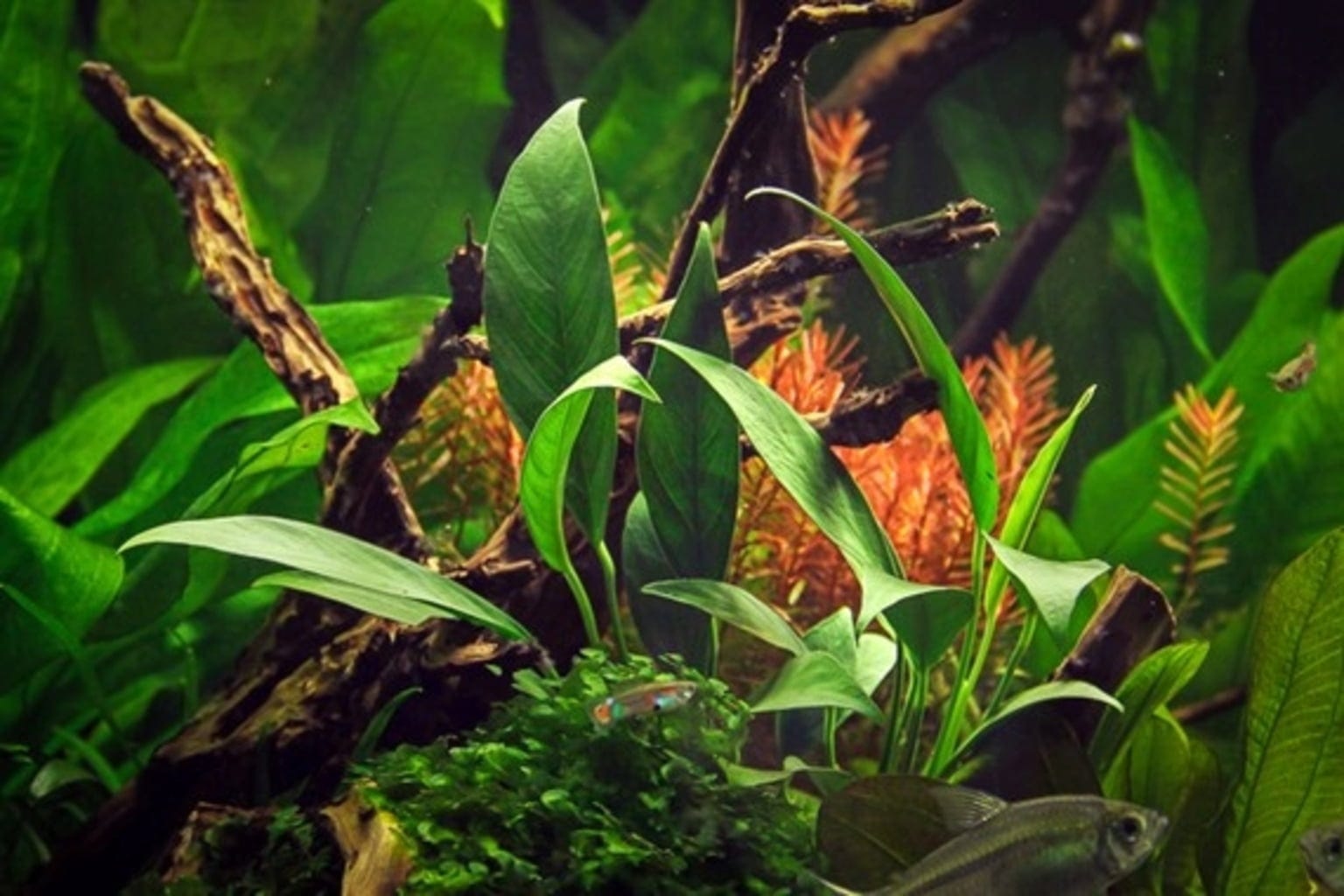Anubias barteri var. glabra raste sporo i posebno očarava svojim uskim listovima glatkih rubova.