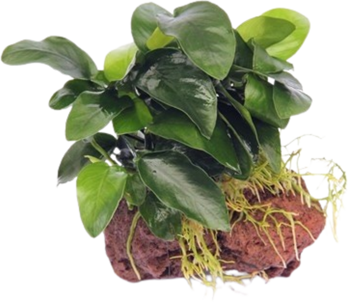 Die Anubias nana sa svojom bogatom zelenom nijansom stvara savršen kontrast crvenilu kamena. Raste sporo i stoga je vrlo jednostavna za njegu, a nije osobito izbirljiva ni po pitanju tvrdoće vode i svjetla. Ovisno o veličini akvarija, možeš kombinirati i više kamenja!