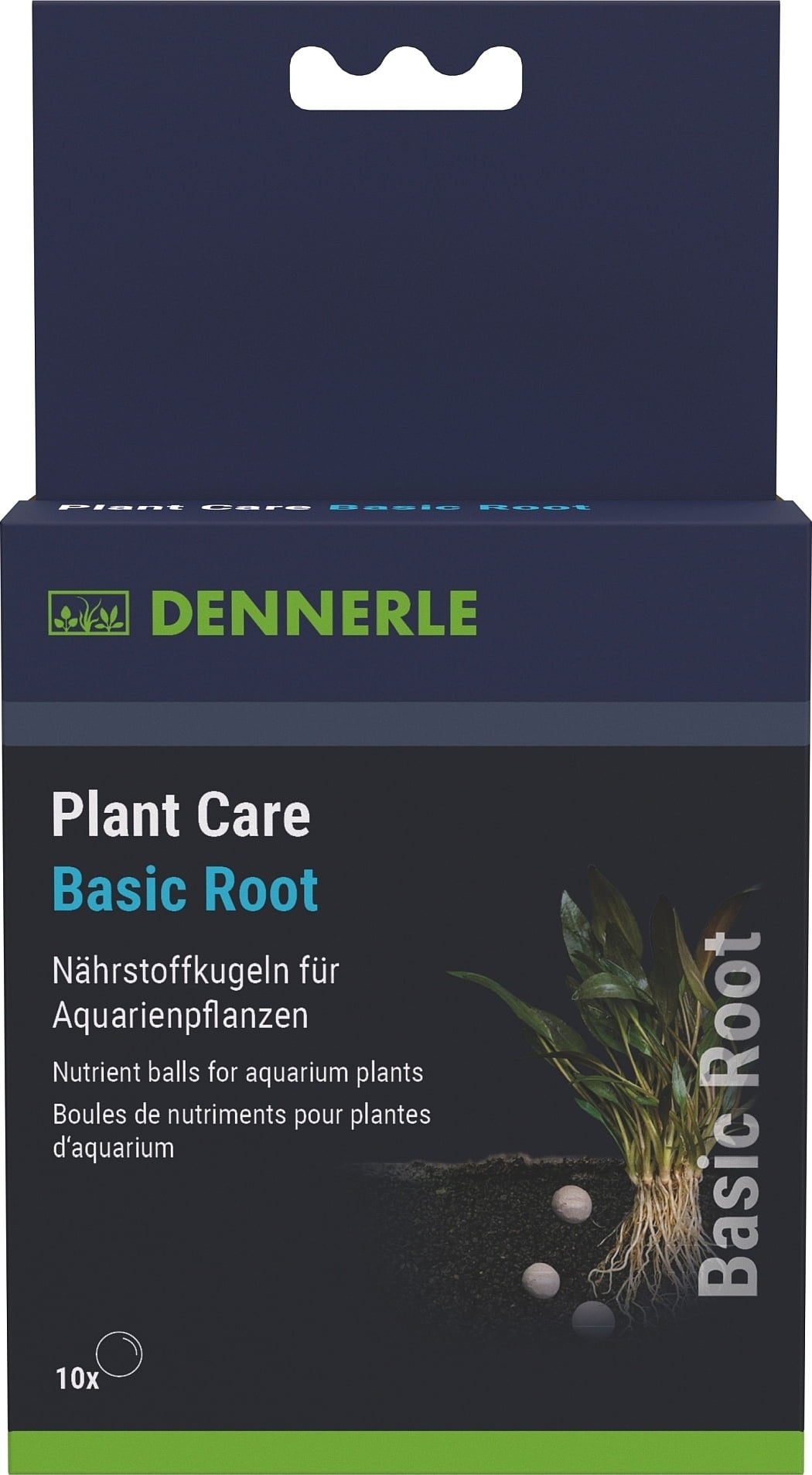 Dennerle Plant Care Basic Root univerzalni je depo hranjivih tvari na bazi gline koji se daje u obliku kuglica hranjivih tvari. Gnojivo je posebno razvijeno za one akvarijske biljke koje svoje hranjive tvari apsorbiraju kroz svoje korijenje. Općenito, korijensko gnojivo ima pozitivan učinak i na tek posađene i na starije biljke.