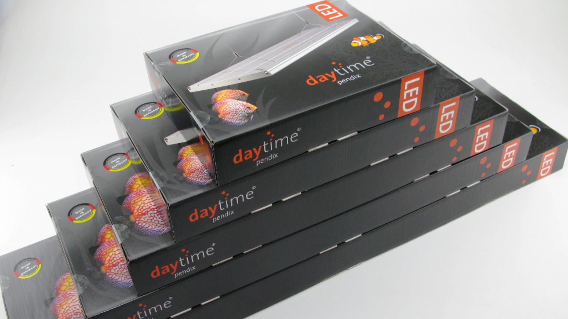 pendix je modularni High-End LED sustav brenda daytime LED, koji je razvijen za otvorene slatkovodne i morske akvarije. LED svjetiljke pendix imaju CNC glodano kućište za module od eloksiranog aluminija otpornog na morsku vodu, koje je opremljeno V4A vijcima od nehrđajućeg čelika. Fleksibilno pričvršćivanje kabela na kućište omogućuje „nevidljivo“ postavljanje priključnog kabela, čime jednostavni dizajn s elegantnim naglascima ne trpi zbog nepovoljnog ožičenja.