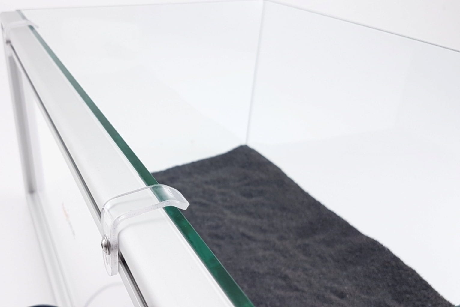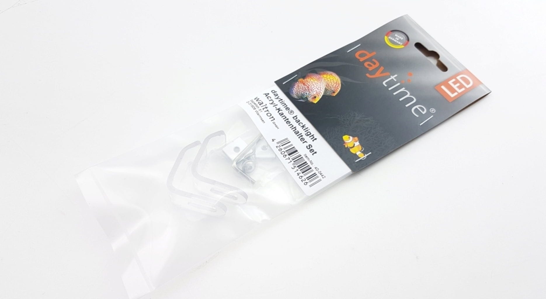 Set akrilnih rubnih držača za backlight namijenjen je za vješanje backlight LED stražnje ploče brenda daytime LED. Držač je izrađen od kristalno čiste plastike otporne na ogrebotine i koroziju te je prikladan za akvarije sa staklom debljine do 8 mm.