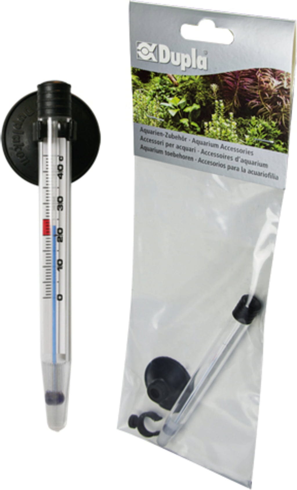 Temperature igraju važnu ulogu u akvariju. Dugotrajno previsoke ili preniske temperature brzo dovode do bolesti riba, ali i biljke mogu početi venuti. Sa sigurnosnim termometrom marke Dupla pouzdano i sigurno provjeravate temperaturu u akvariju. Termometar je izrađen od plastike i nije punjen opasnom živom. Priljepak i kopča uključeni su u isporuku tako da termometar možete odmah pričvrstiti na unutarnju stranu stakla.