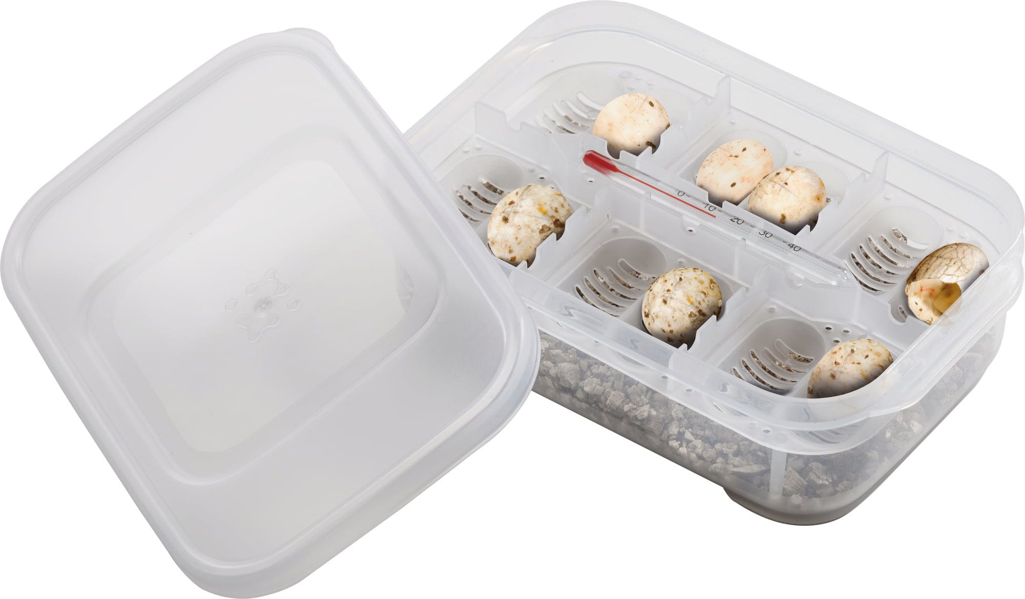 Uzgoj gmazova posao je koji leži na srcu brojnim vlasnicima terarija i koji se obavlja s jako puno strasti. Neupitno je da se pritom mora postupati iznimno pažljivo! Kako bi im olakšali uzgoj i malim gmazovima omogućili bezbrižno izlijeganje, tim Exo Terre osmislio je kutiju za inkubaciju jaja gmazova. Prozirna kutija za inkubaciju izrađena od bezopasnog i životno autentičnog polipropilena koristi metodu lebdeće inkubacije, pri kojoj se jaja stavljaju u posebnu posudu i lebde iznad vode ili supstrata. Jaja se ne nalaze u vlažnom supstratu, ali bez obzira na to kroz zrak dobivaju dovoljno vlage: zajamčena je maksimalna izmjena plinova između jajeta i zraka u inkubatoru. Zahvaljujući ovoj metodi nema opasnosti od nedostatka vlage u supstratu - usprkos maloj količini potrebnog supstrata!