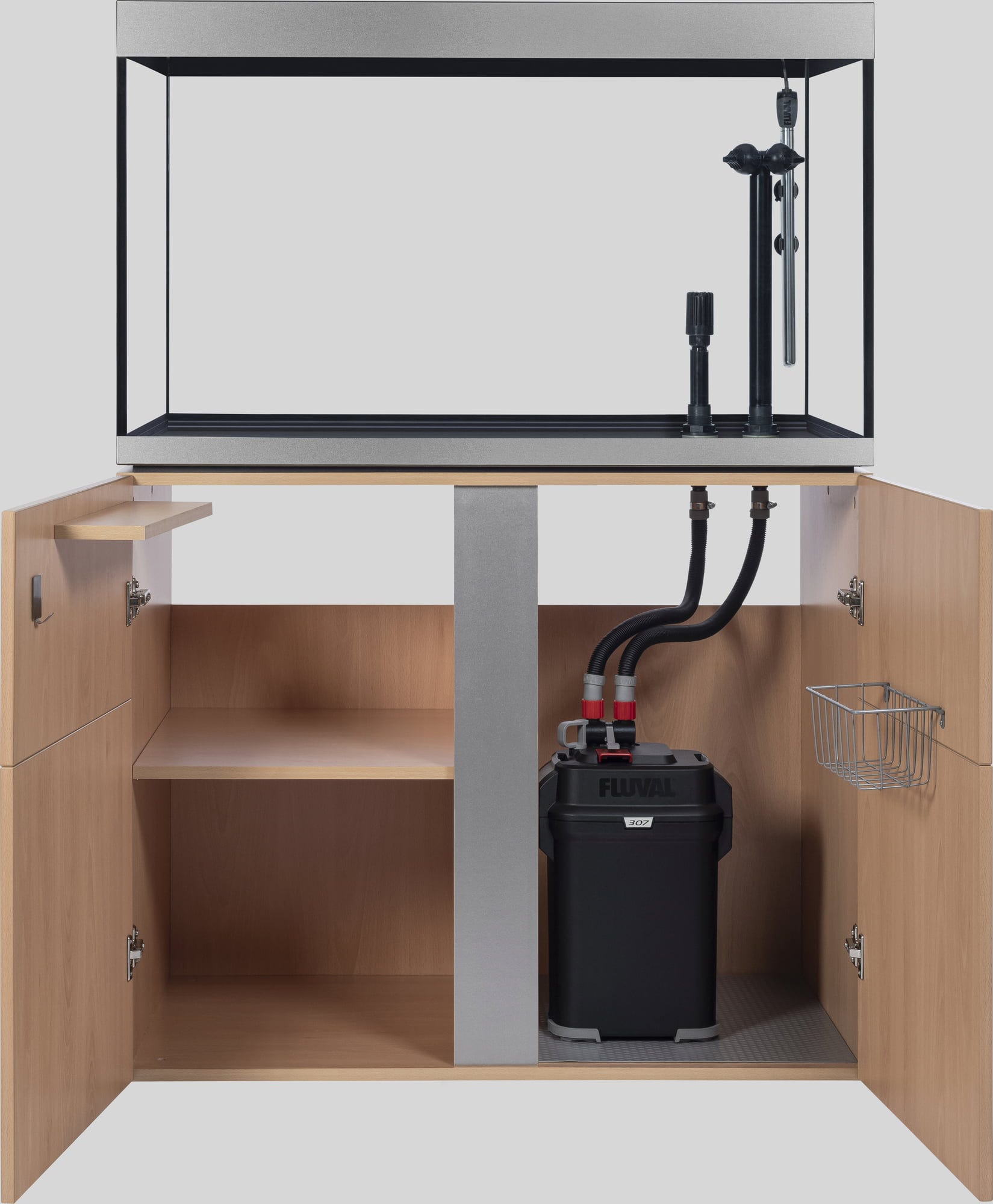 Dimenzije donjeg ormarića: 90 x 55 x 72,9 cm. Komad namještaja osmišljen je točno za akvarijski set (uključujući tehniku) "Siena 270" tvrtke Fluval.
