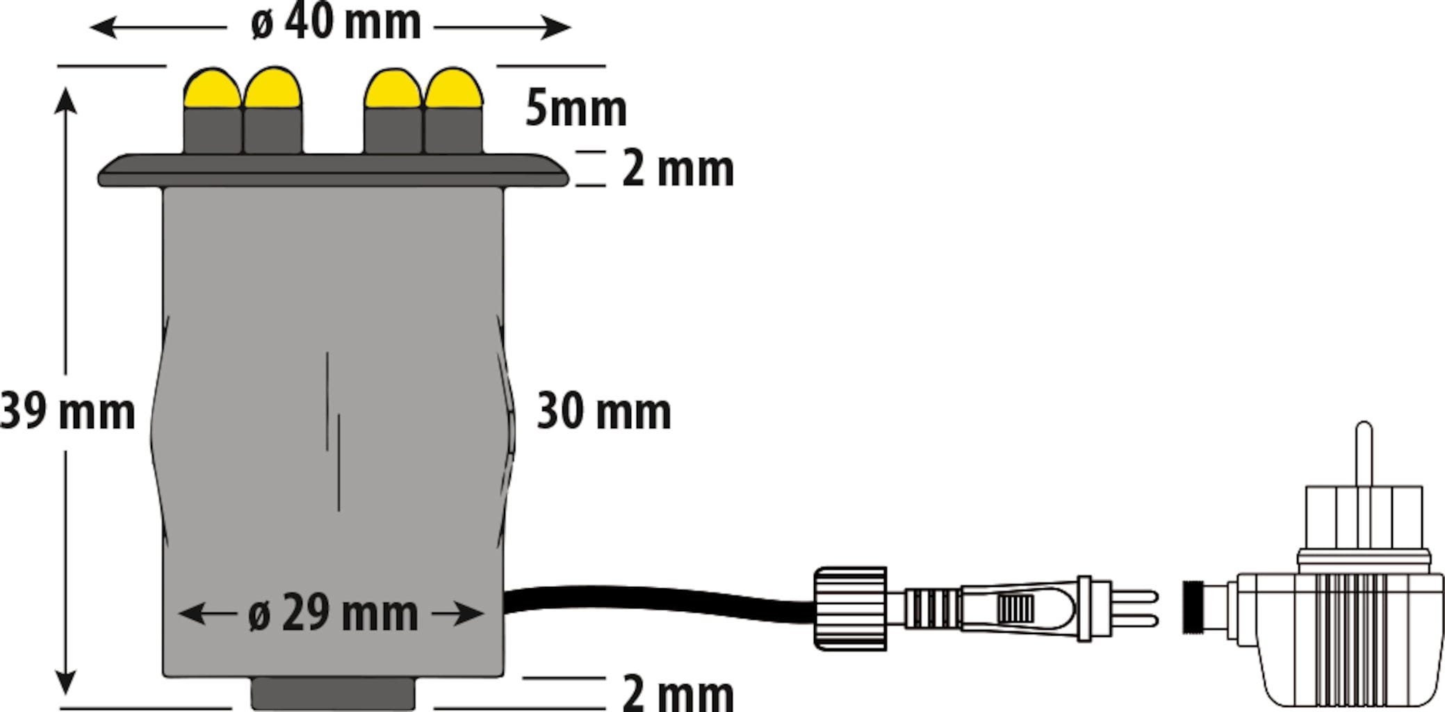 Ovaj kompaktni podvodni LED prsten sa 6 dioda tvrtke HEISSNER omogućuje atmosfersko osvjetljenje izvorišnog kamenja i vodenih objekata toplobijelim, energetski učinkovitim svjetlom. S promjerom kućišta od 30 mm, jedinica se precizno uklapa u standardizirane rupe od 32 mm na kamenim fontanama. Zahvaljujući izdašnom priključnom kabelu od 10 metara, može se fleksibilno postaviti u vanjskom prostoru. Isporučeni vanjski sigurnosni transformator osigurava pouzdan rad uz minimalno stvaranje topline, dok robusna konstrukcija omogućuje upotrebu uz vodu i u vodi.