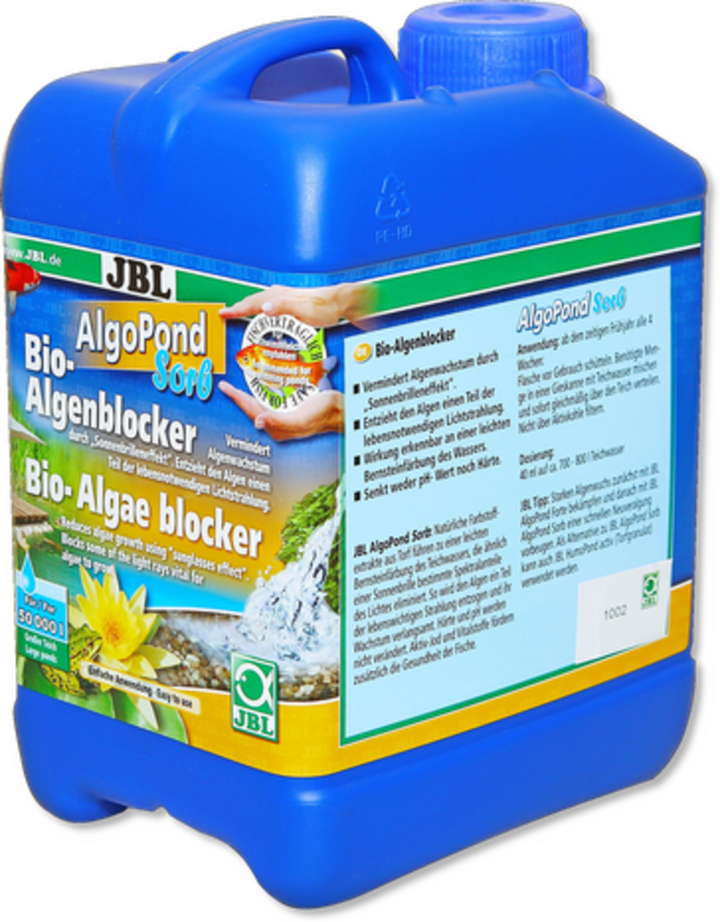 Prirodni ekstrakti boja iz treseta u sredstvu AlgoPond Sorb dovode do blage jantarne obojenosti jezerske vode. Ona, poput sunčanih naočala, oduzima svjetlosti određene dijelove spektra. Algama se na taj način oduzima dio životno važnog zračenja te se ograničava njihov rast. Tvrdoća i pH-vrijednost se ne mijenjaju. Aktivni jod i vitalne tvari dodatno promiču zdravlje riba.