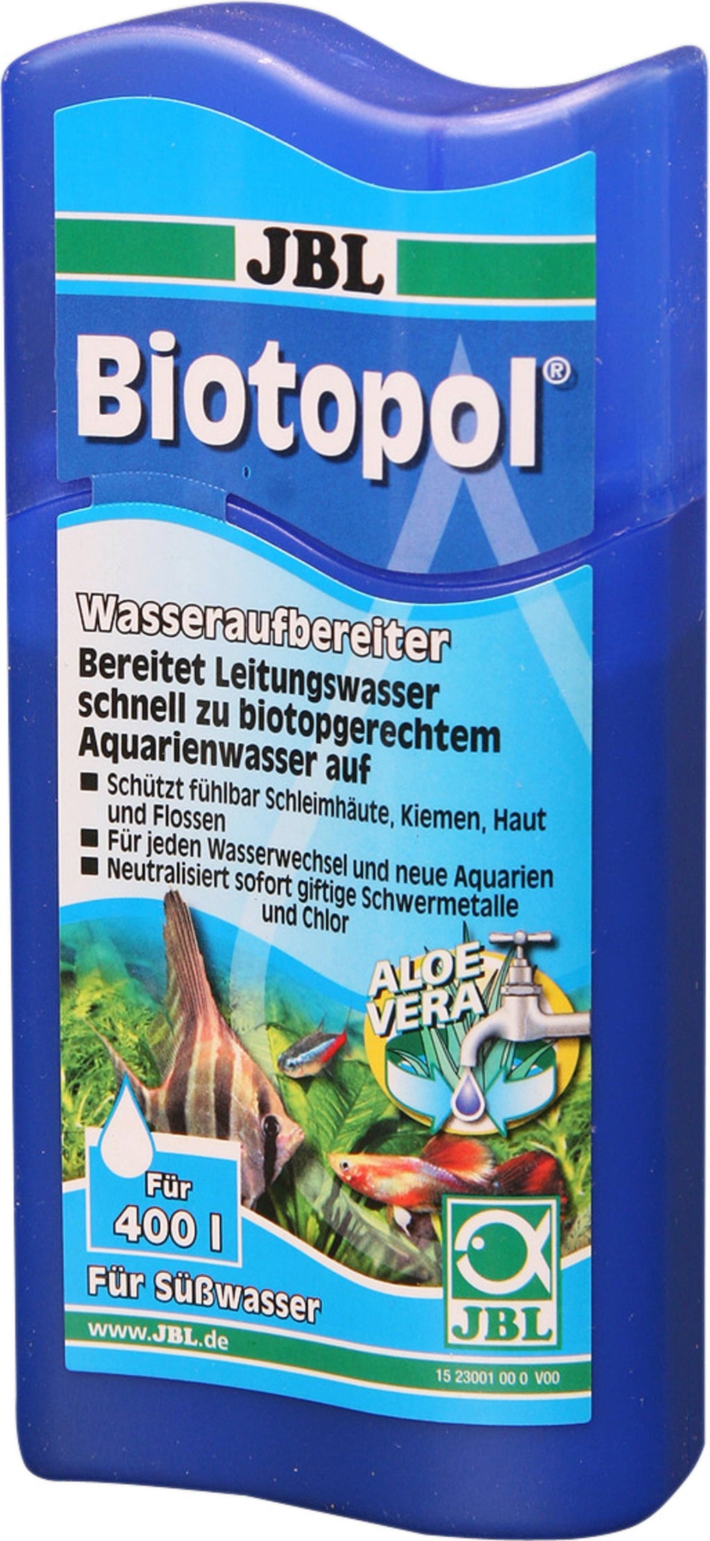 JBL Biotopol priprema akvarijsku vodu prema biotopu i tako štiti stanovnike akvarija. Čista akvarijska voda znači optimalnu kvalitetu vode. Voda iz akvarija mora se ponovno tretirati za nove instalacije, djelomične promjene vode i nakon uporabe sredstava ili lijekova. Čak je i voda iz slavine agresivna i ponekad sadrži teške metale poput bakra, cinka i olova. Da bi ova voda bila pogodna za ribice, ne smije sadržavati teške metale i klor ili kloramin.