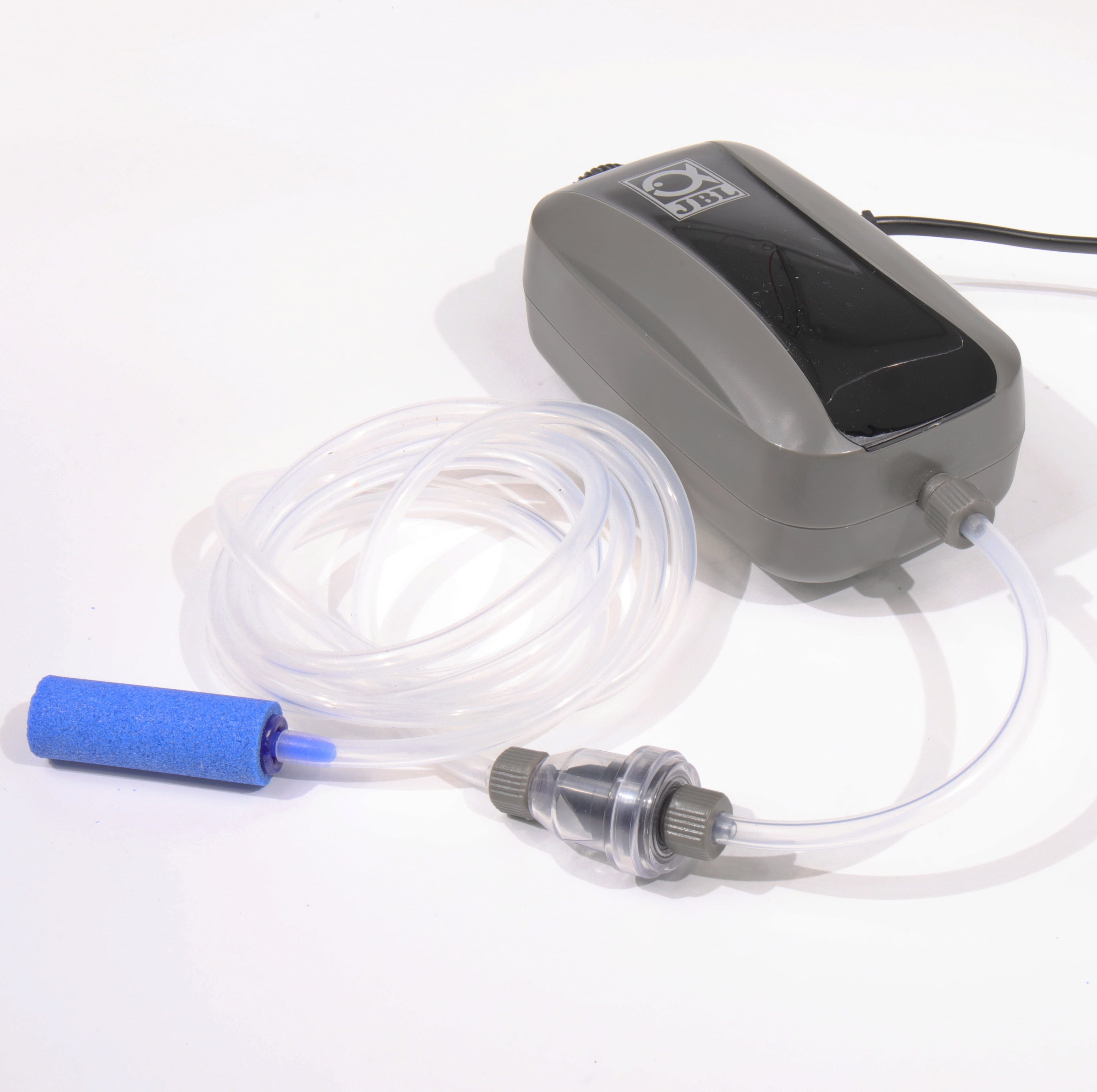 Uz JBL ProAir a200 osiguravate si komplet spreman za priključivanje koji vaše stanovnike akvarija pouzdano opskrbljuje kisikom. Instalacija je vrlo jednostavna: Postavite pumpu izvan akvarija i spojite je na raspršivač preko isporučenog crijeva od 2 metra i sigurnosnog nepovratnog ventila.