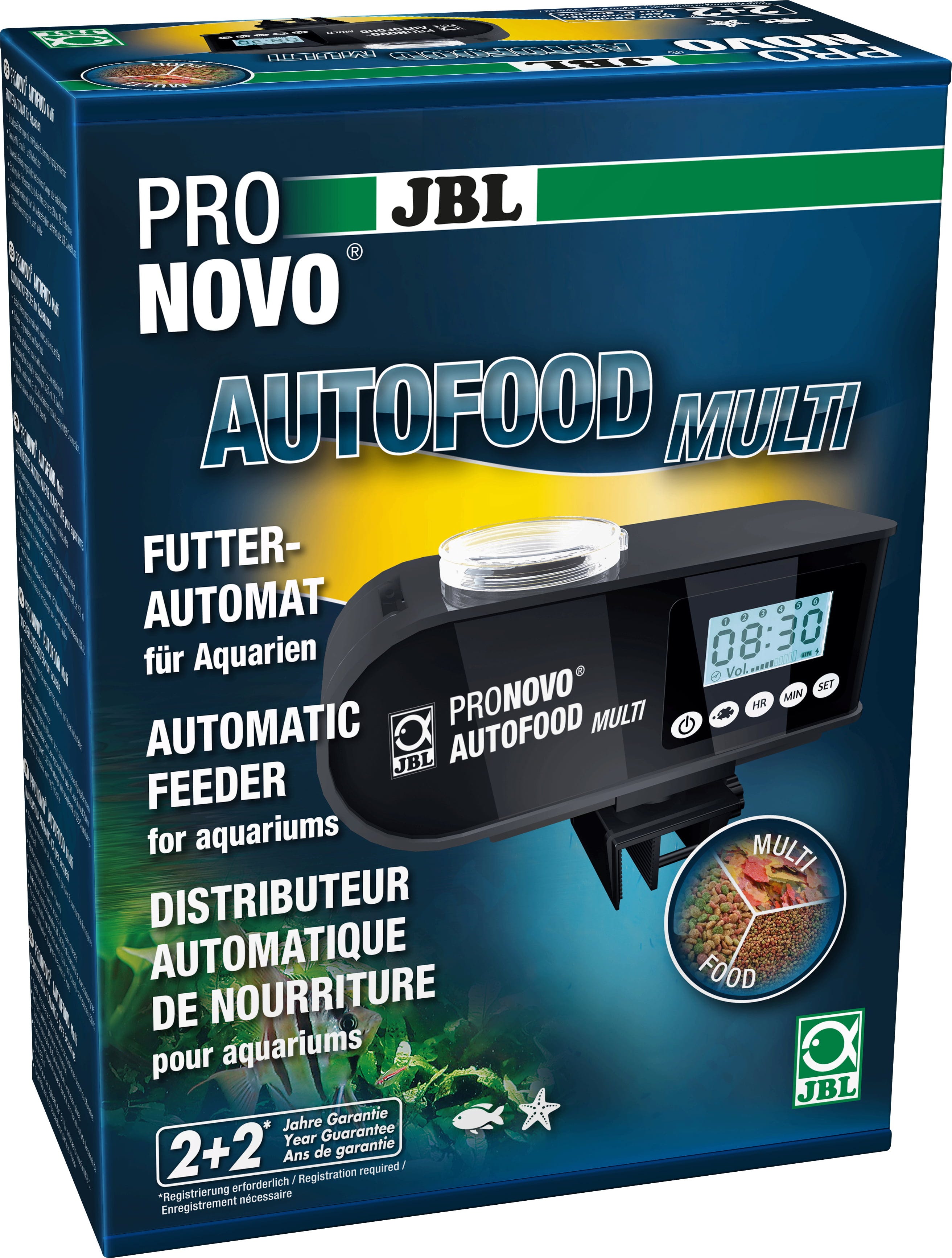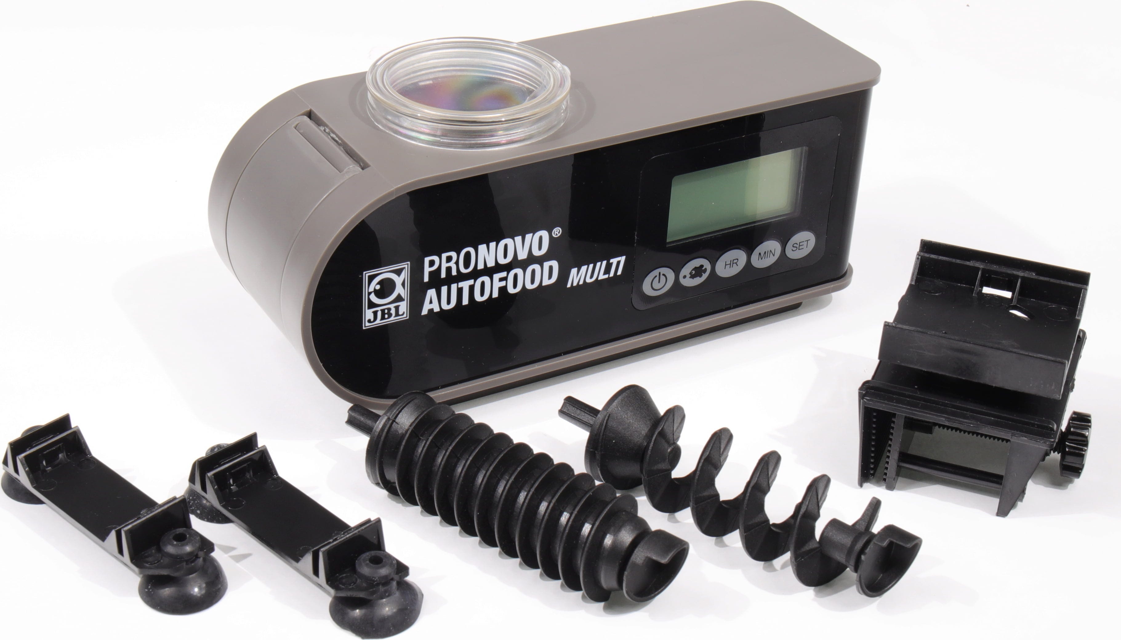 Uz JBL AutoFood Multi uživate u potpunoj slobodi, a vaše ribe u preciznoj opskrbi! Ova moderna automatska hranilica preuzima svakodnevnu rutinu za vas u slatkovodnim i morskim akvarijima i hrani vaše životinje do 6 puta dnevno pahuljicama ili granulama do 3 mm. Količina hrane može se precizno regulirati u 10 stupnjeva, dok tri različita pužna transportera osiguravaju optimalan transport svake vrste hrane.