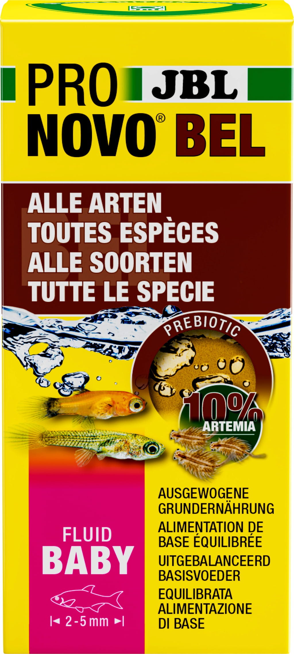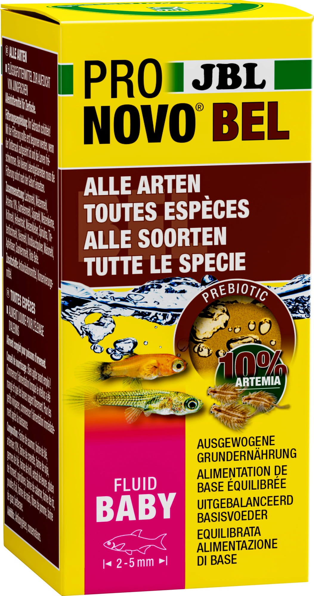 Pronovo Bel Fluid je tekuća hrana s ultra finom hranom otopljenom u vodi namijenjena mlađi riba koje polažu jajašca. Dragocjena hrana u tekućem obliku sastoji se od preko 50 prirodnih sirovina i savršeno funkcionira bez umjetnih dodataka. Između ostalog, hrana sadrži i artemija račiće, koji su iznimno hranjivi, lako probavljivi i dugoročno potiču rast mladih riba.