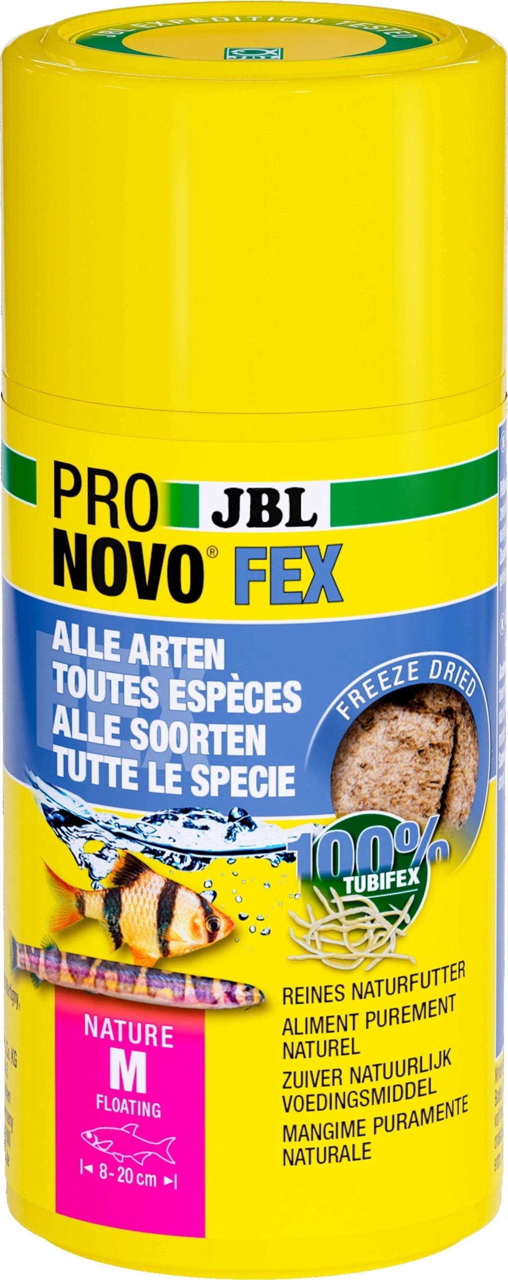 NOVO FEX od JBL-a prava je poslastica za tropske slatkovodne ribe i kornjače veličine od 5 do 20 cm: poseban proces sušenja smrzavanjem ne samo da čuva vrijedne hranjive tvari, već i ukusne arome. Prerađuju se samo svježe sirovine, bez proizvoda poput ribljeg brašna. Kockice tonu u zemlju ili se tamo mogu sakriti – somvke rado otkopavaju kockice. Ne samo da su bogate hranjivim tvarima, već su i vrlo probavljive: životinje stoga proizvode manje izmeta, a voda se ne zamućuje.