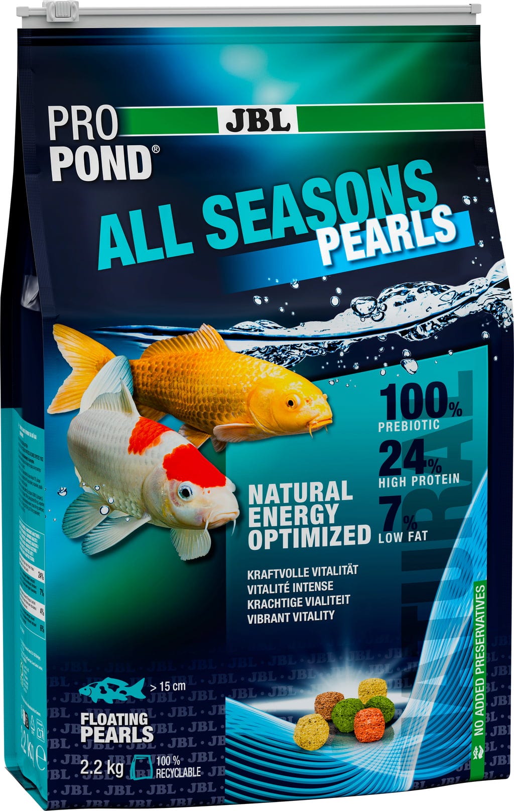 ProPond All Seasons Pearls od tvrtke JBL je praktična potpuna hrana u obliku granula, koja se može hraniti tijekom cijele godine. Pogodna je za sve ribe u jezercu, uključujući koi šarane, zlatne ribice i pajčolanke.