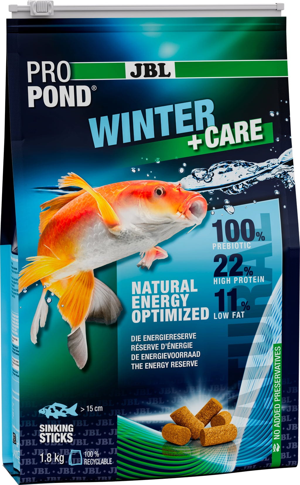 ProPond Winter + Care od tvrtke JBL je tonuća potpuna hrana koja je idealna za koi šarane i ostale ribe u ribnjaku i posebno je razvijena za zimsku hranidbu.