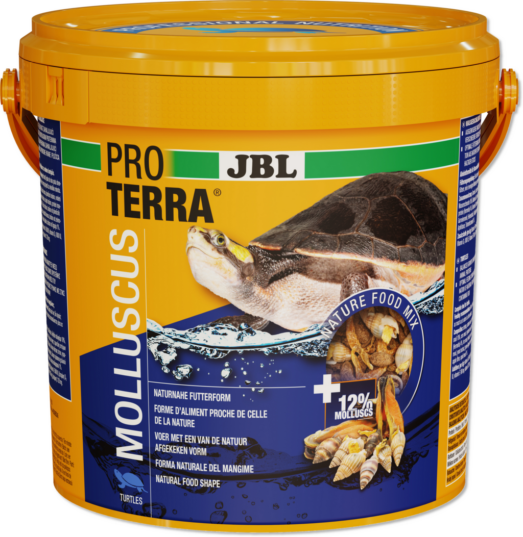 Kako bi Vašim vodenim i močvarnim kornjačama ponudio još više raznolikosti na jelovniku, JBL je sa svojim PROTERRA MOLLUSCUSOM razvio vrlo posebnu kombinaciju. U ovoj dopunskoj hrani prirodni, sušeni puževi susreću se s vodenim kukcima, dagnjama i škampima, zaokruženim štapićima koji sadrže ribu. Naravno, u recepturi se koriste samo cijeli puževi zajedno sa svojim kućicama kako bi se njihovi vrijedni sastojci što bolje uključili.