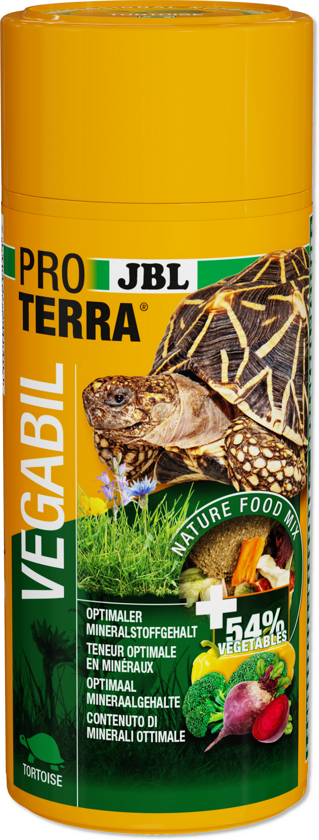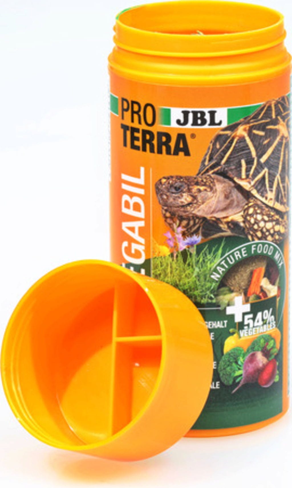 JBL je s Proterra Vegabilom razvio glavnu namirnicu od pažljivo sušenog povrća i čisto biljnog ekstrudata. Sastav povrća sadrži važne minerale i izvrsna je opcija za prehranu baziranu na biljnoj bazi.