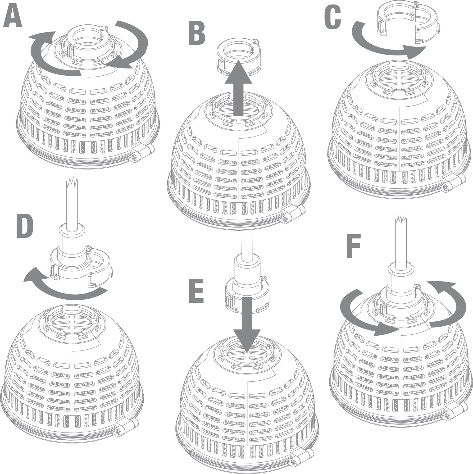 Odvijte adapter i stavite ga oko nastavka JBL TempSets. Zatim vratite adapter s TempSetima u štitnik od opeklina.