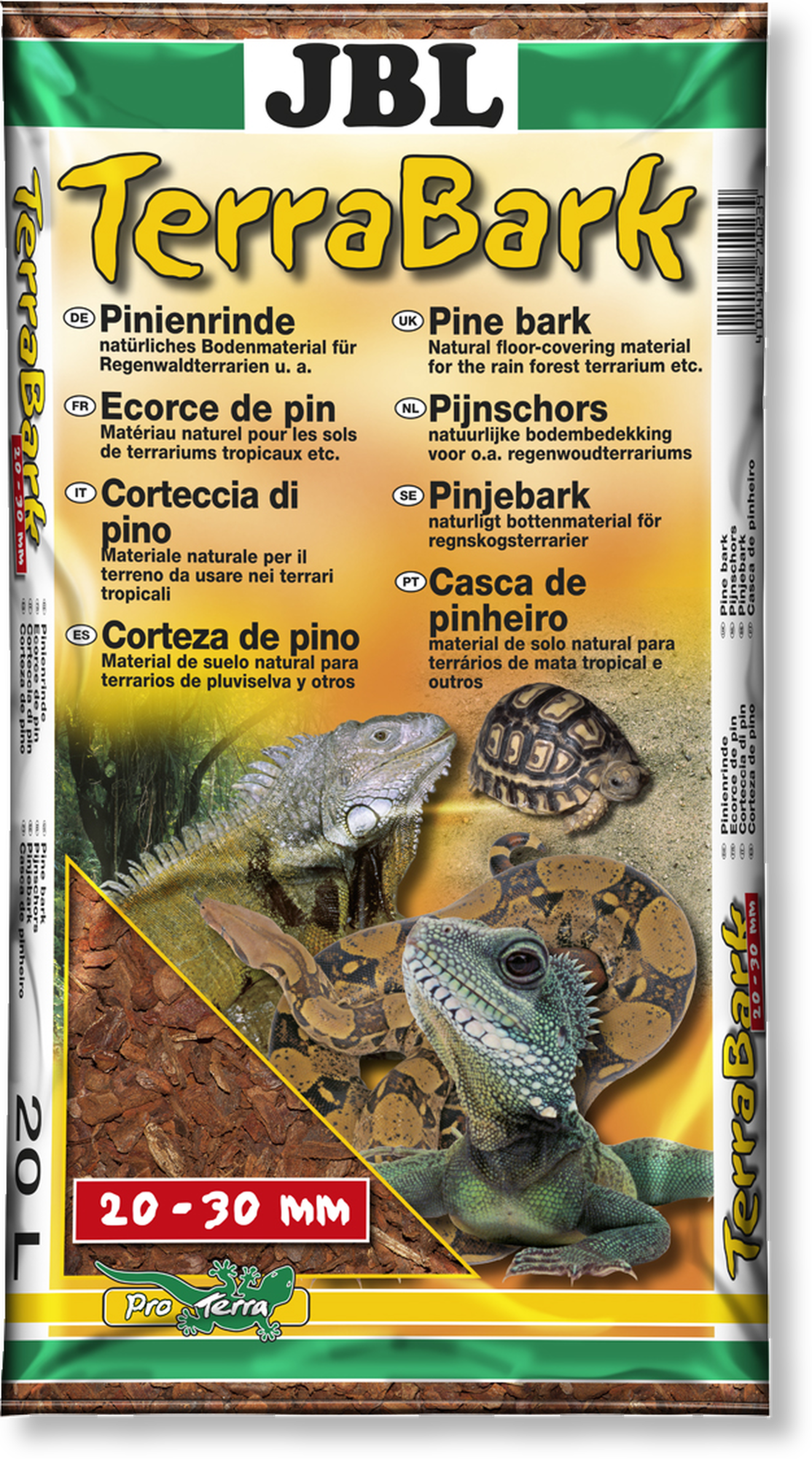 Tlo za šumske i prašumske terarije mora ispunjavati nekoliko zahtjeva. TerraBark tvrtke JBL sastoji se od borove kore i zajamčeno je bez pesticida. Podloga također regulira vlažnost zraka u terariju i osigurava rahlu strukturu tla.