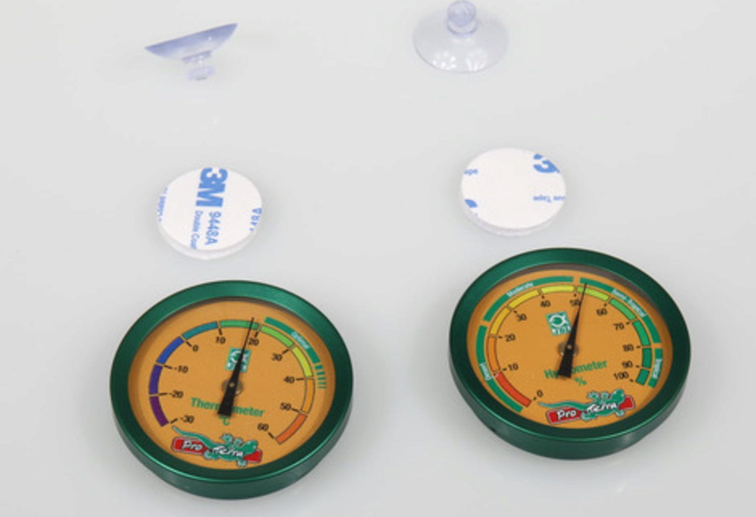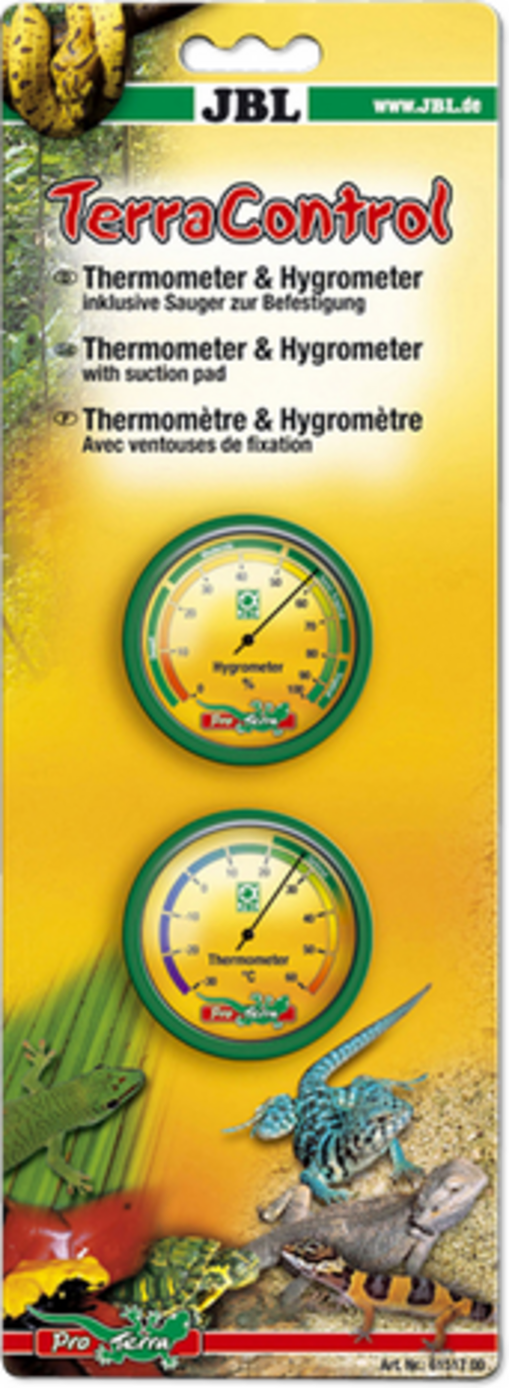 Kako bi vaš štićenik definitivno mogao uživati u ugodnoj klimi u terariju, trebali biste redovito provjeravati temperaturu i vlažnost. Ovaj set iz JBL-a uključuje termometar (za mjerenje temperature) i higrometar (za mjerenje relativne vlažnosti) kao i usisne elemente i čičak spojnice za sigurnu ugradnju na glatke površine.