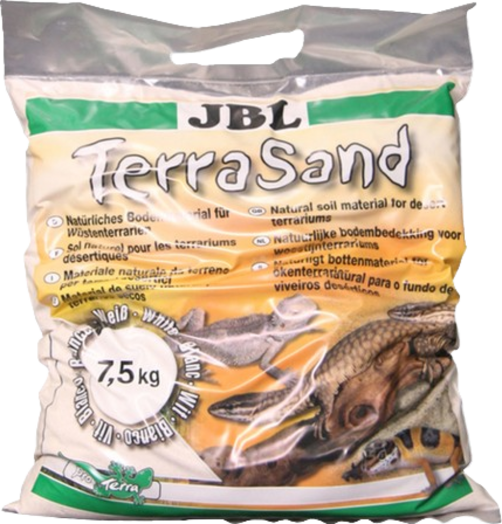 Pustinjski terariji zahtijevaju prirodnu podlogu s posebnim svojstvima. TerraSand natur-weiß tvrtke JBL ima finu granulaciju od 0,2 do 0,5 mm i k tome je gotovo bez prašine. Struktura podupire prirodno ponašanje pri kopanju mnogih vrsta te dodatno njeguje kožu životinja, odnosno sprječava štetnu abraziju.