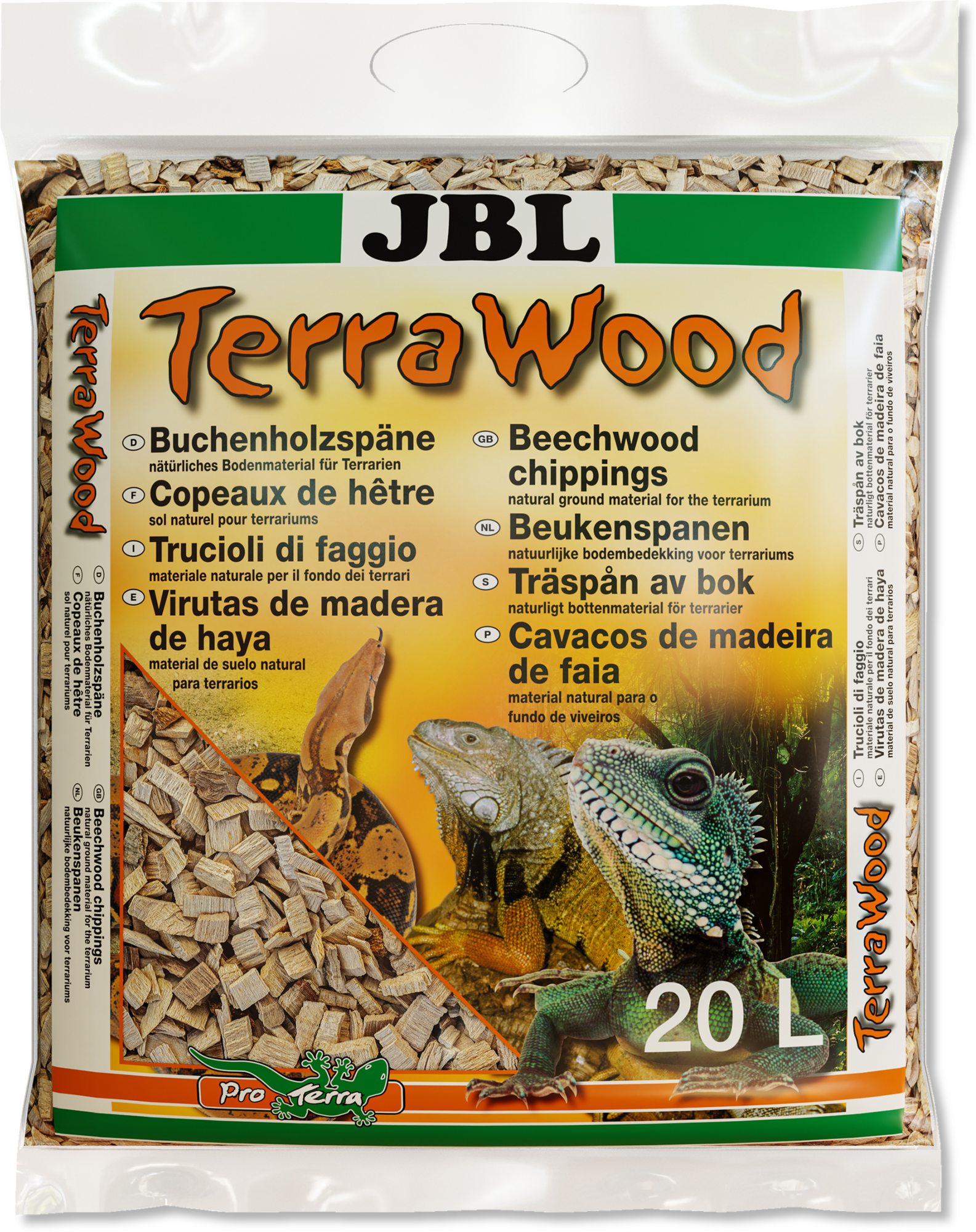 Čak i kod suhih i polusuhih terarija, podloga mora imati određene posebnosti. Osim toga, trebala bi biti prilagođena dotičnoj životinjskoj vrsti i omogućiti utočište blisko prirodi u kojem će se životinje osjećati ugodno. TerraWood tvrtke JBL sastoji se od vrlo grube bukove piljevine i zajamčeno je bez pesticida. Proizvod podliježe strogim kontrolama kvalitete i sadrži samo pažljivo provjerene sirovine.