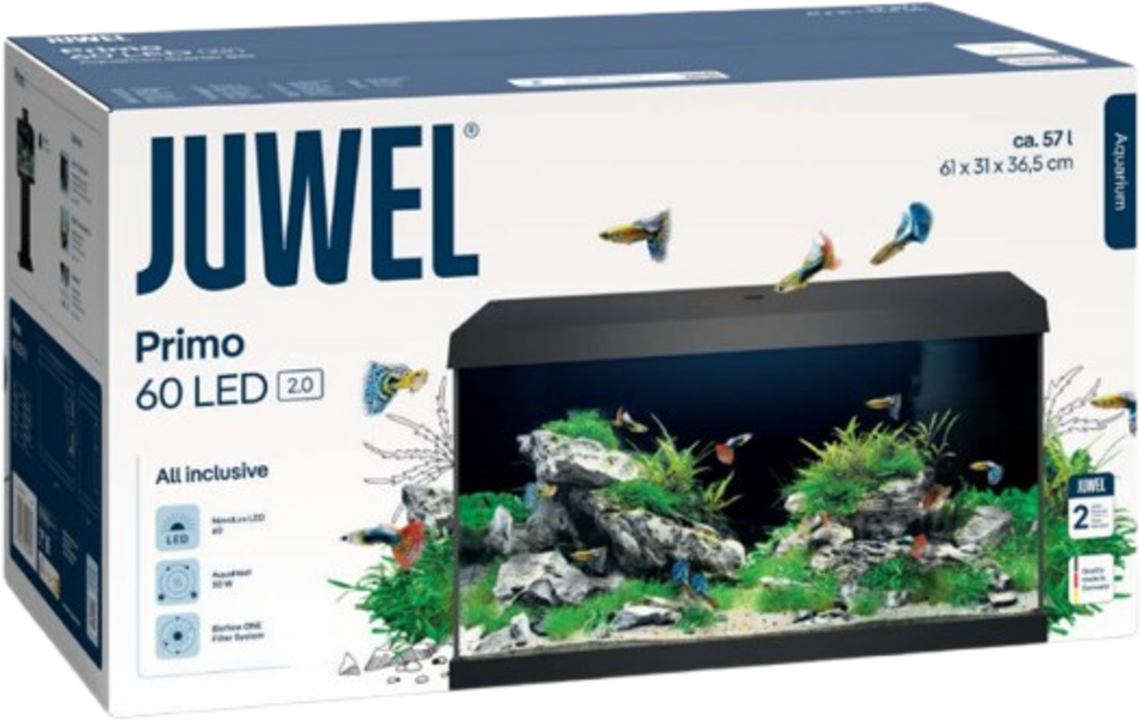 Juwel Primo 60 2.0 LED akvarijski set nudi početnicima savršen ulazak u akvaristiku i to na najvišoj tehničkoj razini! Moderna LED rasvjeta i učinkovit sustav filtriranja dio su Primo koncepta i idealno zaokružuju set!
