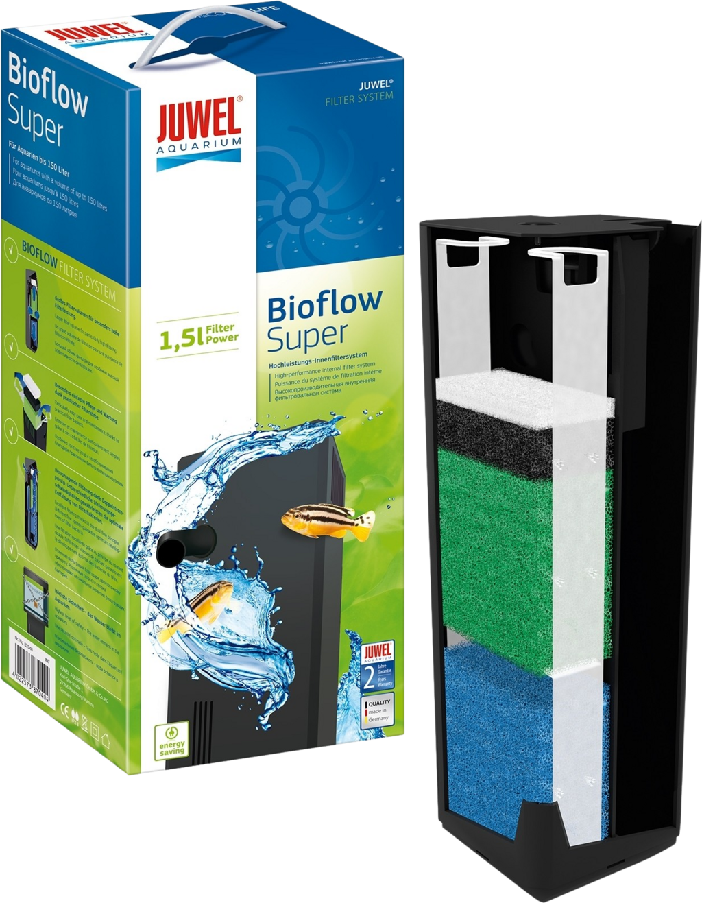 Juwel Bioflow je nekoliko puta znanstveno ispitan od strane neovisnih instituta i već je dugo jedan od vodećih svjetskih filtarskih sustava u modernoj akvaristici i već se dokazao milijune puta. Filtarski sustav Juwel Bioflow karakterizira posebno veliki volumen filtera. To nudi prostor za izvrsnu mehaničku, kemijsku i biološku filtraciju te osigurava dug radni vijek filtra i duge intervale održavanja. Konstrukcija filtra također vam omogućuje lak pristup pumpi i grijaču, a upotreba posebnih košara za filtar osigurava jednostavno uklanjanje i čišćenje medija za filtar.