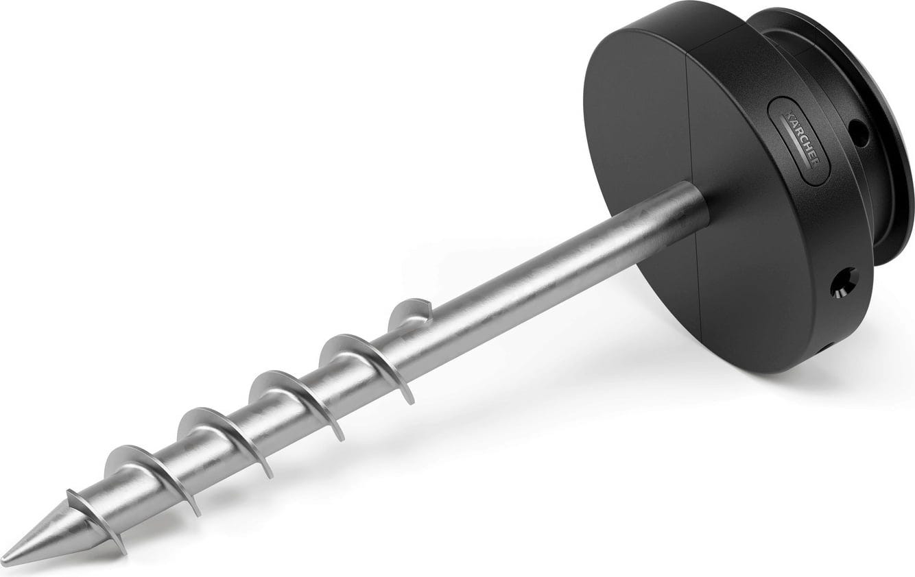 Erdspieß za bubanj za crijevo omogućuje fleksibilno postavljanje kutije za crijevo direktno u vrtu. Umjesto fiksnog montažnog zida, kutija za crijevo može se postaviti na bilo koje željeno mjesto u tlu. Robustan metalni šiljak se uvija u tlo i osigurava stabilnost tijekom korištenja. Integrirana libela pomaže pri montaži šiljka kako bi vertikalno stajao čak i na neravnom terenu.