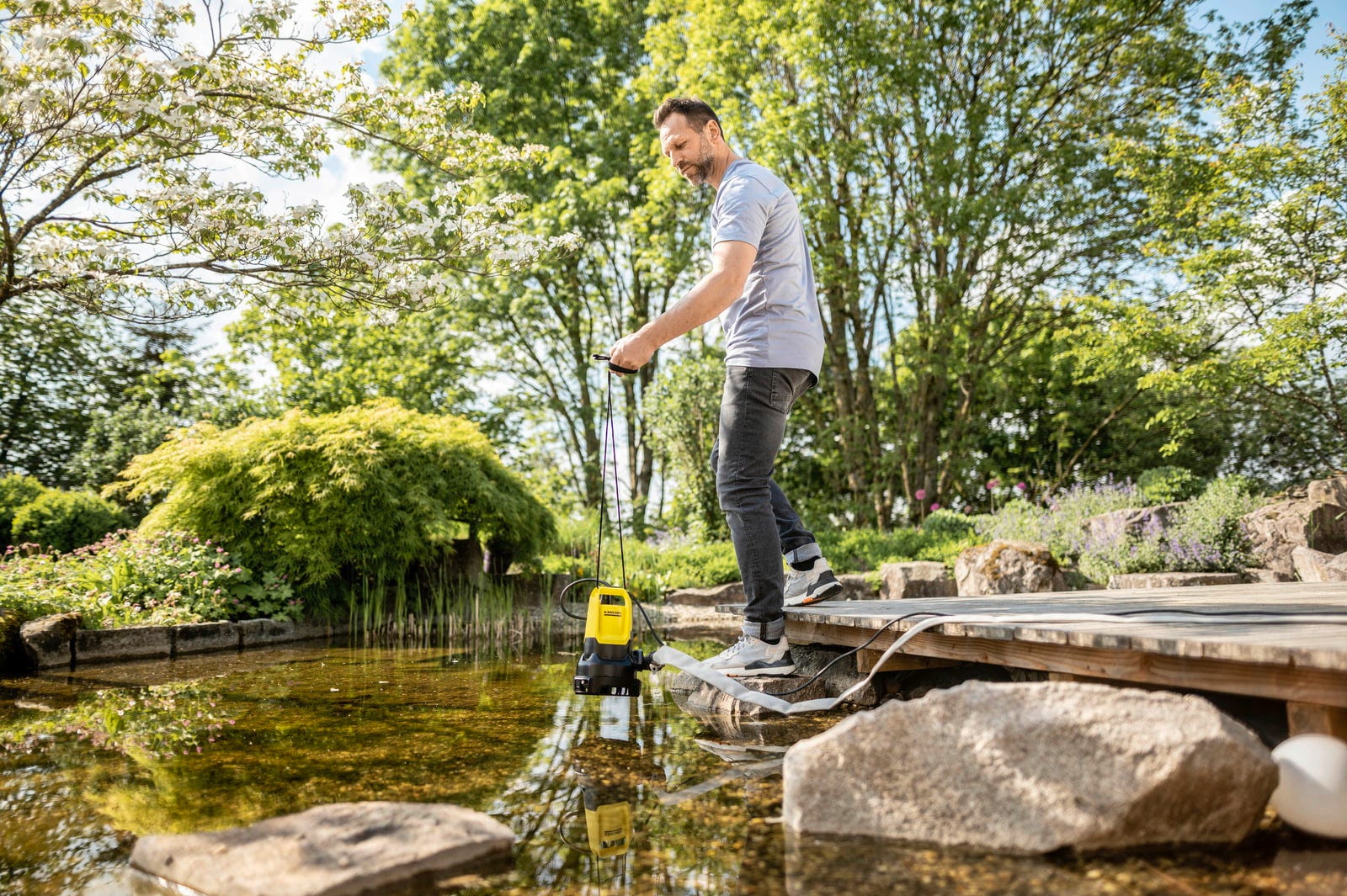 Zahvaljujući integriranoj funkciji 2 u 1, pumpa se može fleksibilno koristiti. U načinu rada za nečistu vodu, na primjer kao potopna pumpa za građevinsku jamu ili za pražnjenje ribnjaka, mogu se ispumpati nakupljanja vode s česticama do 20 mm granulacije. Kada se košara filtra postavi na ravno usisavanje, pumpa omogućuje gotovo suhu drenažu do preostale vode od 1 mm – praktično pri ispumpavanju podruma ili bazena.