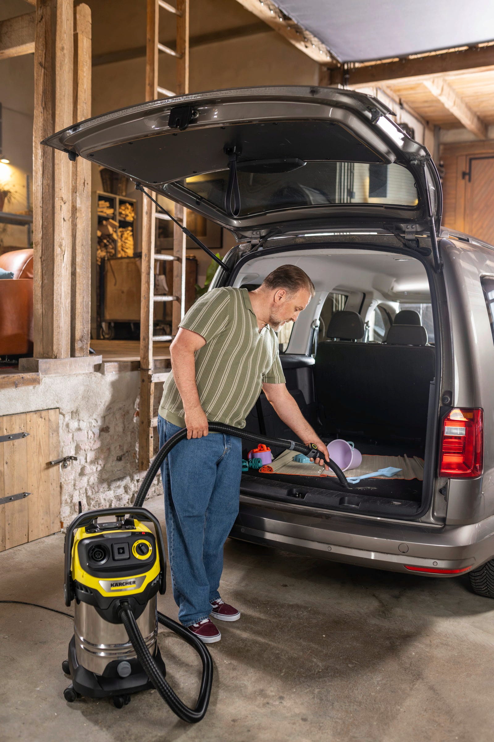 Kao mokro-suhi usisavač za gradilišta, pouzdano uklanja građevinski otpad, prašinu ili strugotine. U radionici čisti prašinu od brušenja, drvene strugotine ili metalne ostatke, dok kao mokro-suhi usisavač za podove temeljito čisti betonske, podrumske ili radioničke podove. Čak se i manji vodeni kvarovi u kući ili vlaga u podrumu mogu učinkovito pokupiti. Također je prikladan za garažu, njegu vozila ili unutrašnjost automobila i nudi dovoljno kapaciteta za duže upotrebe bez čestog pražnjenja.