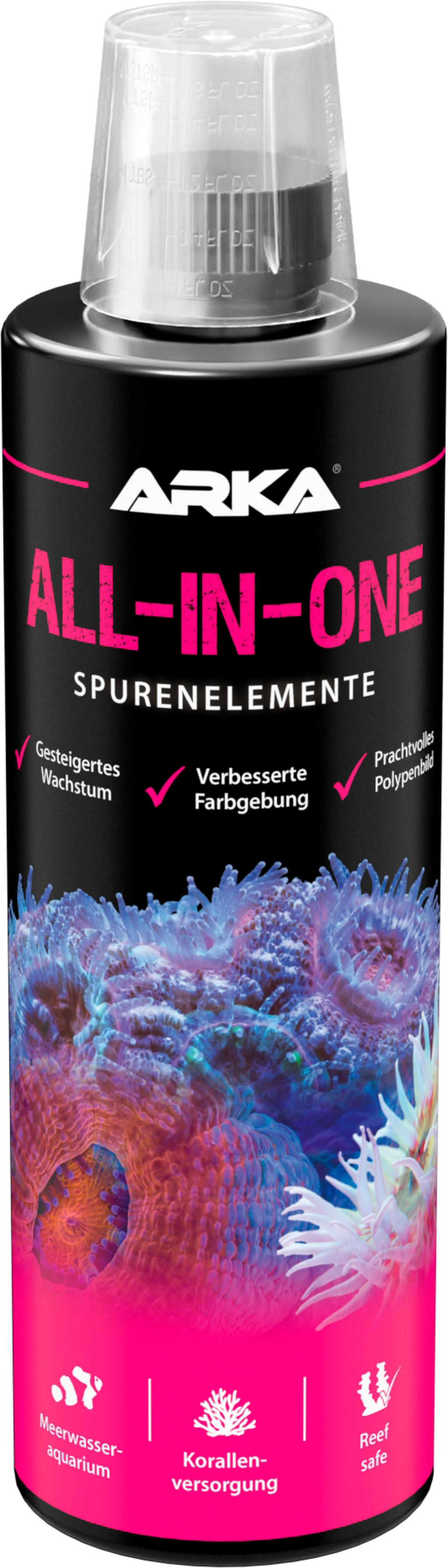 All-IN-ONE iz Microblifta optimalno opskrbljuje koraljne polipe, alge i stanovnike grebena važnim hranjivim tvarima i elementima u tragovima u slanom akvariju. Dodatni vitamini i aminokiseline jačaju imunološki sustav tako da je apsorpcija elemenata u tragovima optimalna. Potiče se rast polipa i osigurava veličanstven izgled. Uz All-in-ONE možete učiniti da vaš morski akvarij zablista.