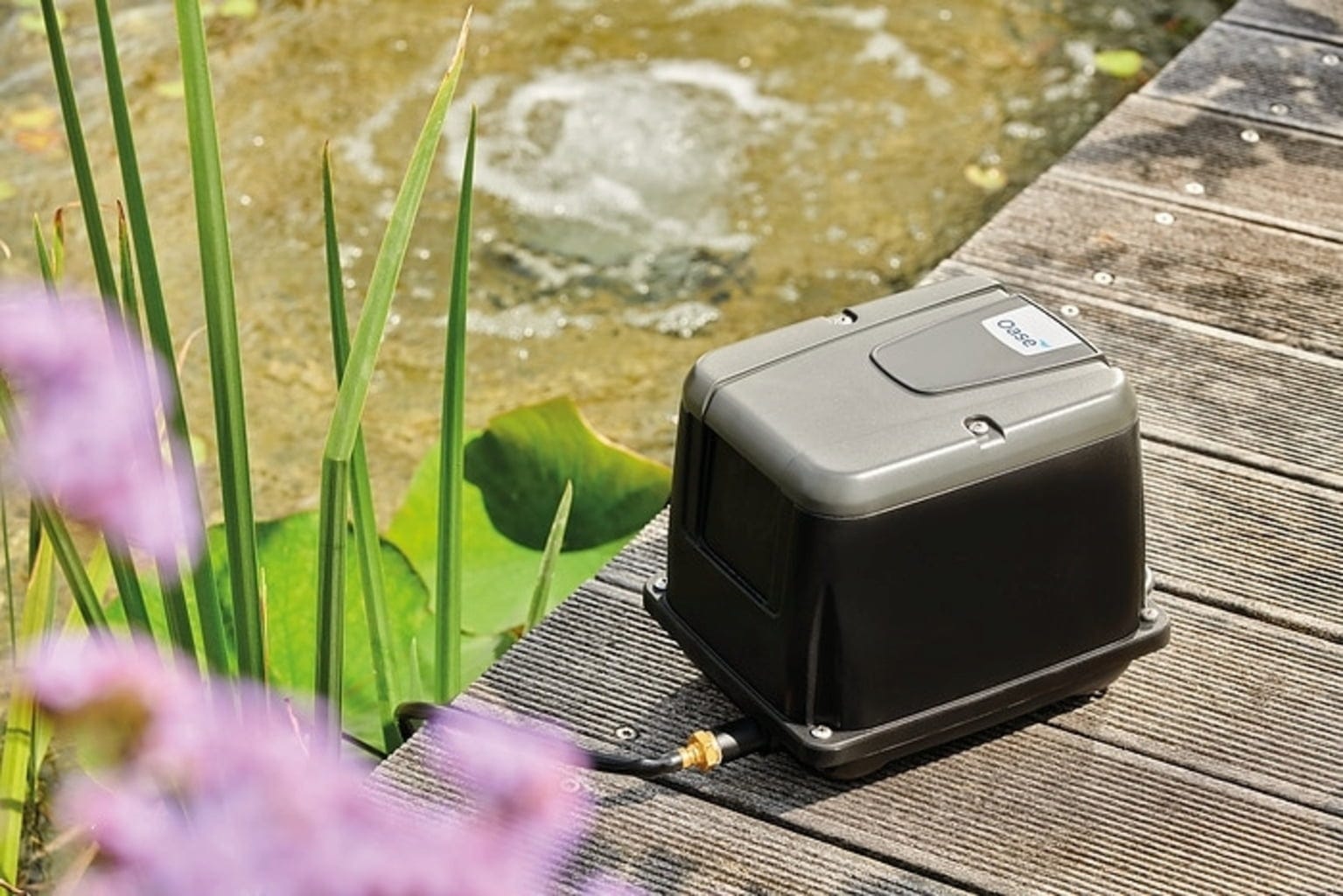 AquaOxy 2500 tvrtke Oase je snažna, tiha i pouzdana pumpa za prozračivanje koja je razvijena posebno za profesionalne zahtjeve u vrtnim ribnjacima s ribama, posebno koi šaranima. Ispunjava visoke zahtjeve za opskrbu vode kisikom, što je presudno za držanje životinja u skladu s njihovim potrebama, osobito pri porastu temperatura. AquaOxy 2500 također pomaže poboljšati stope razgradnje amonija, amonijaka, nitrita i nitrata u vodi omogućujući bolju aktivaciju mikroflore kisikom.