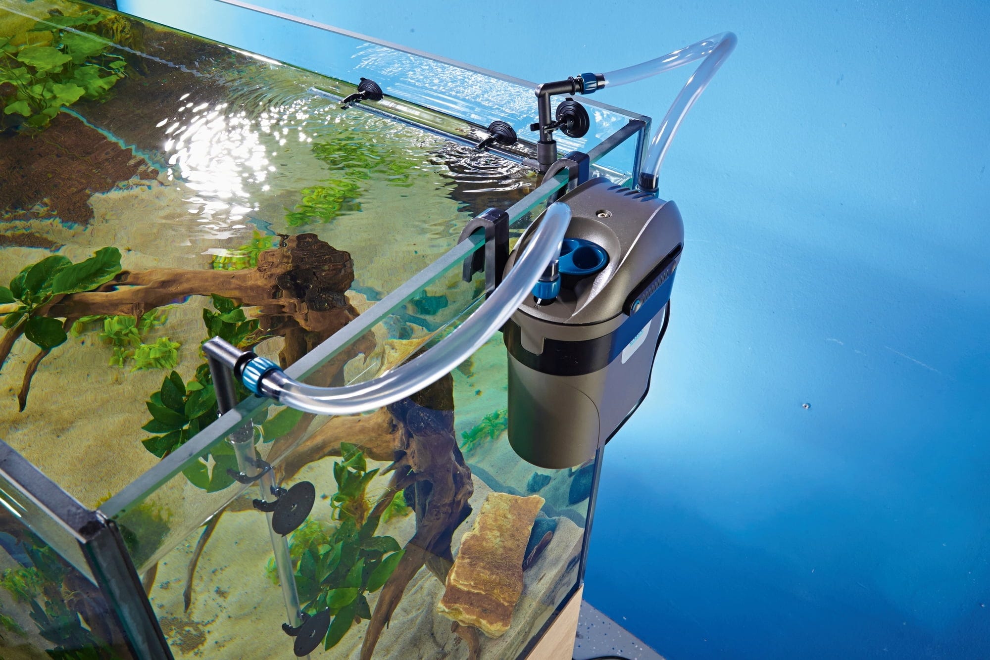 S FiltoSmartom osiguravate ne samo učinkovito filtriranje u svom akvariju. Zahvaljujući višestupanjskom, mehaničko-biološkom filtriranju, osigurava kristalno čistu vodu i filtrira i najsitnije mutne i lebdeće tvari iz vode. Unatoč kompaktnoj veličini, nudi veliku filtarsku površinu i time izvrsno mjesto za naseljavanje korisnih bakterija za čišćenje. Automatsko zatvaranje sprječava neželjeno istjecanje vode pri čišćenju filtra, a s EasyClick mehanizmom otvaranja vrlo se lako otvara. Tih i energetski štedljiva pumpa ne ističe se ometajućim zvukovima. Na izlaznom adapteru možete posve jednostavno i individualno regulirati količinu protoka vode. Zahvaljujući sigurnom i stabilnom postolju, filtar ima optimalnu stajaću površinu. FiltoSmart uključuje set za priključivanje i spreman je za instalaciju, tako da ga možete izravno priključiti.