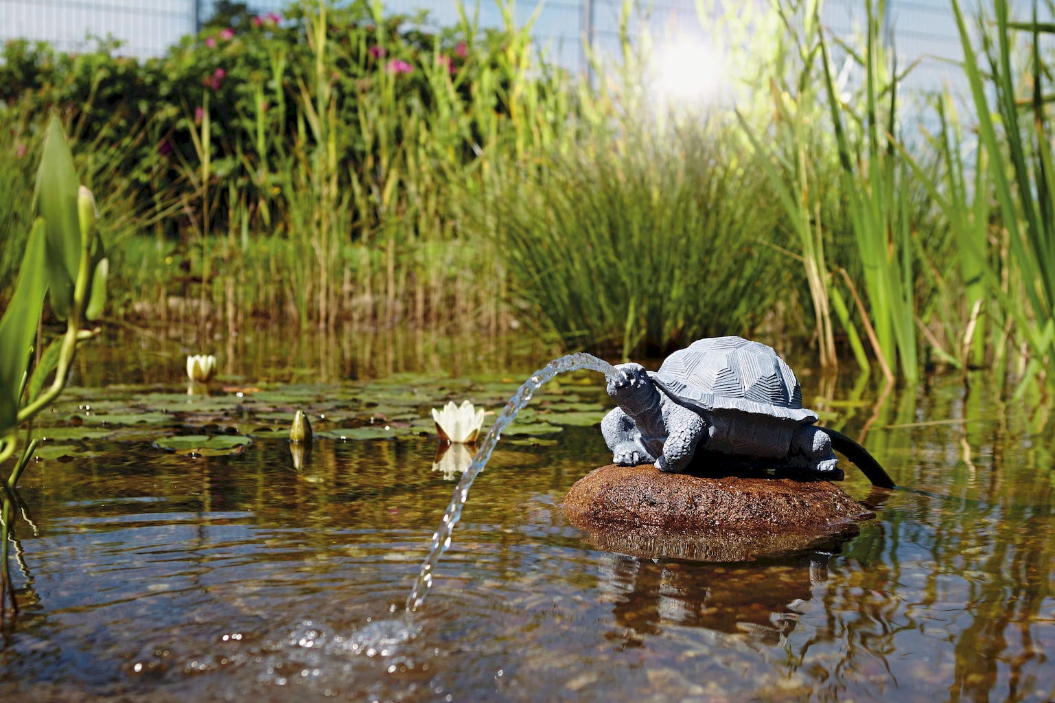Ova preslatka kornjača ne čini samo vizualni detalj u vašem ribnjaku! Izrađena od poliresina otpornog na vremenske uvjete, ova životinjska figura u obliku izbacivača vode omogućuje cirkulaciju vode u vašem ribnjaku, tako da se voda opskrbljuje dodatnim kisikom – što će posebno razveseliti stanovnike vašeg ribnjaka.