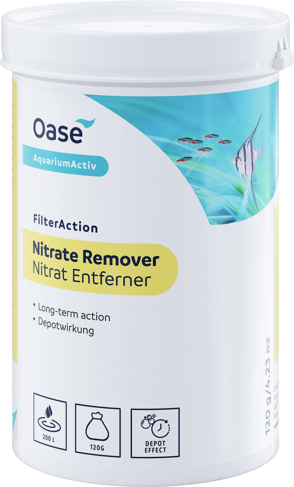 Izvrsna kvaliteta vode čini bazu sretnih biljaka, životinja i vlasnika akvarija! FilterAction Nitrat Entferner brenda OASE optimalno podržava vašu rutinu njege ako želite nježno ukloniti nitrat i već koristite aktivne denitrifikatore (anaerobne bakterije) za njegu svog akvarija: peleti formiraju zone bez kisika (anaerobne zone) putem stvaranja bio-filmova – bakterije ih trebaju kako bi mogle preživjeti i funkcionirati. Osim toga, preparat povećava karbonatnu tvrdoću vode i stabilizira pH vrijednost; razgradnja nitrata odvija se dugoročno. Praktično: potrebno je manje zamjena vode, čime se smanjuje ne samo vaš trud, već i stres kod svih stanovnika akvarija!