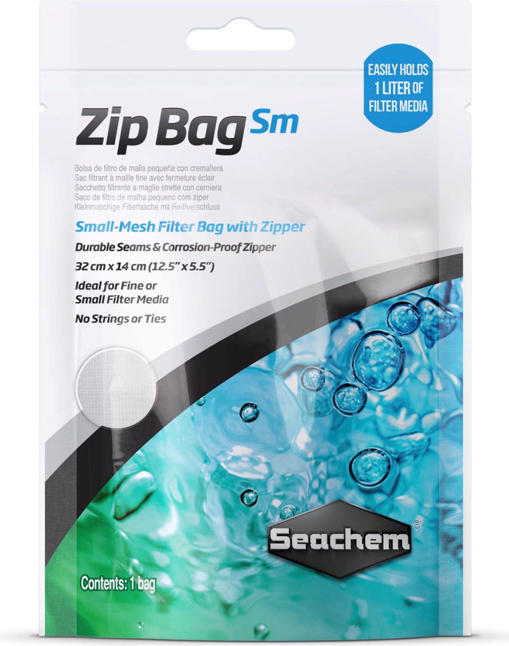 Zip Bag™ tvrtke Seachem je mrežasta vrećica za filtarske materijale, koja je dostupna u različitim veličinama i za različite filtarske medije. Prošivena PVC vrećica opremljena je patentnim zatvaračem otpornim na koroziju.