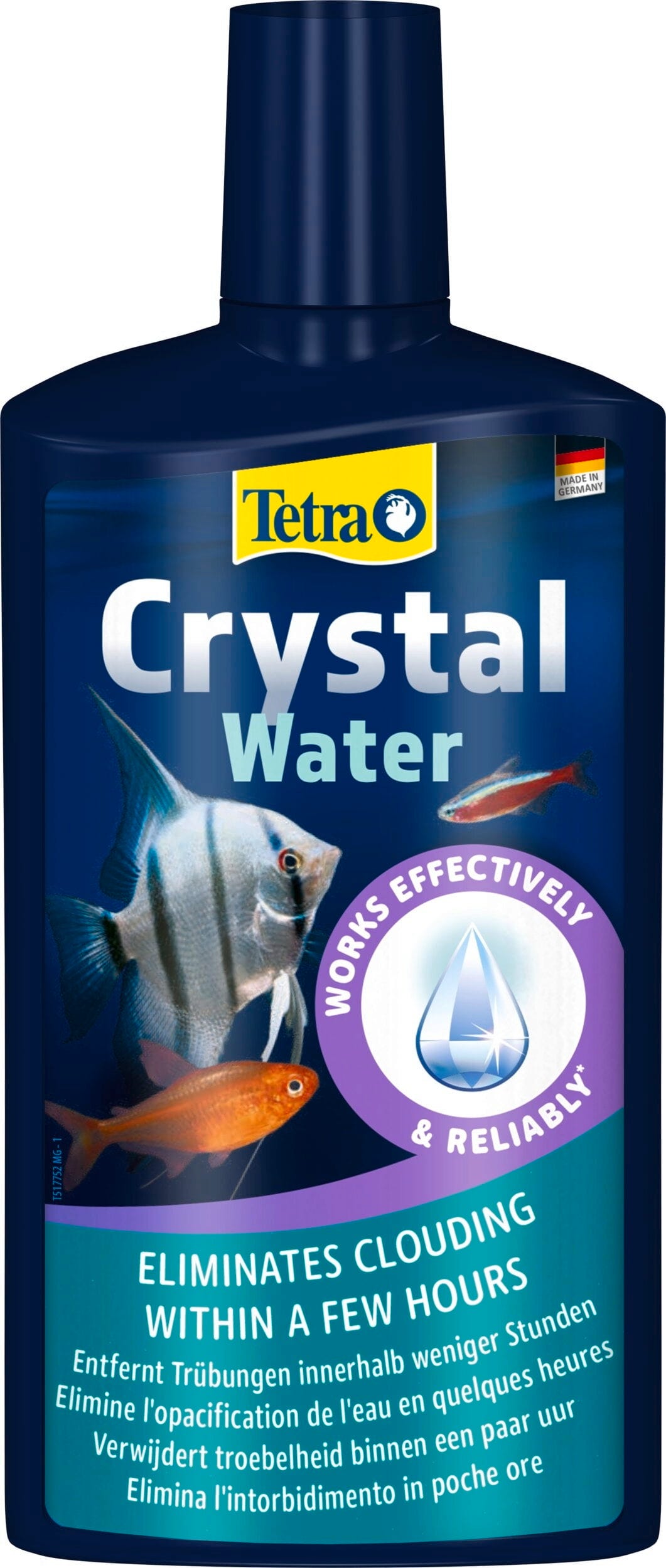 CrystalWater čini slatkovodnu akvarijsku vodu kristalno čistom, brzo i sigurno uklanjajući sve vrste zamućenja. Plutajuće čestice uzrokovane algama ili bakterijama vežu se i filtriraju filtrom za akvarij. Prvi rezultati vidljivi su već nakon 2-3 sata. Proizvod se može koristiti sa svim KH vrijednostima, čak i ako su niske. Formula sadrži anorganske soli željeza i aluminija koje omogućuju trenutnu učinkovitost.