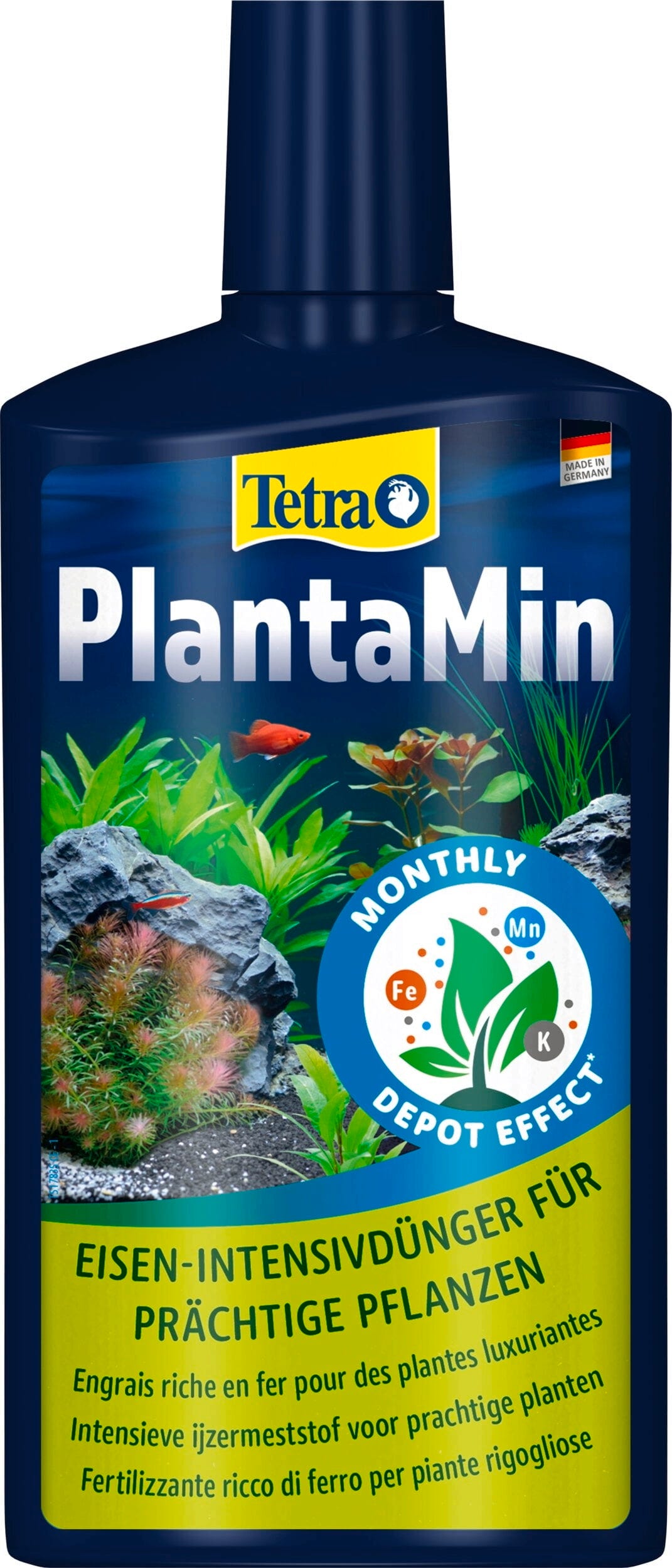 Tetra PlantaMin je folijarno gnojivo s depo formulom koje osigurava hranjive tvari tijekom razdoblja od 4 tjedna i prikladno je samo za slatkovodne akvarije te je dostupno u različitim spremnicima.